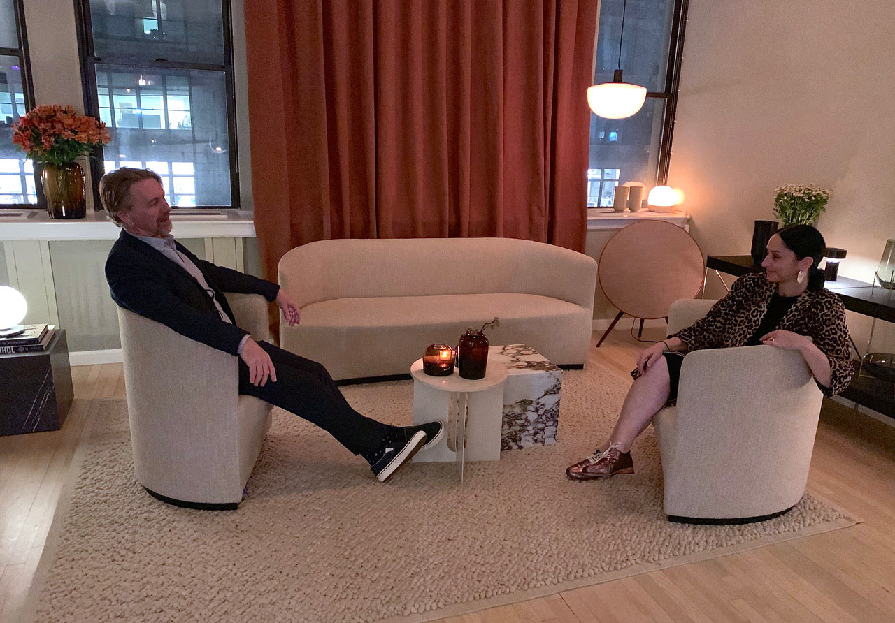 We always mix business with pleasure. And it was a treat to not only chat over a cocktail with some of the international designers and reps we work with at A+R, but to also see our newly relocated senior design advisor Conor Ford. Seven years in at our LA base, Conor recently set up in Brooklyn to be closer to our east coast business. The three of us did the rounds at Saturday’s SoHo parties–at Flos, Lee Broom, Tom Dixon (Conor seen at Dixon’s lavish temple) among others–and capped the eve at our old local fave, Bar Pitti, where we ran into the duchessa of New York, our pal Debi Mazar.