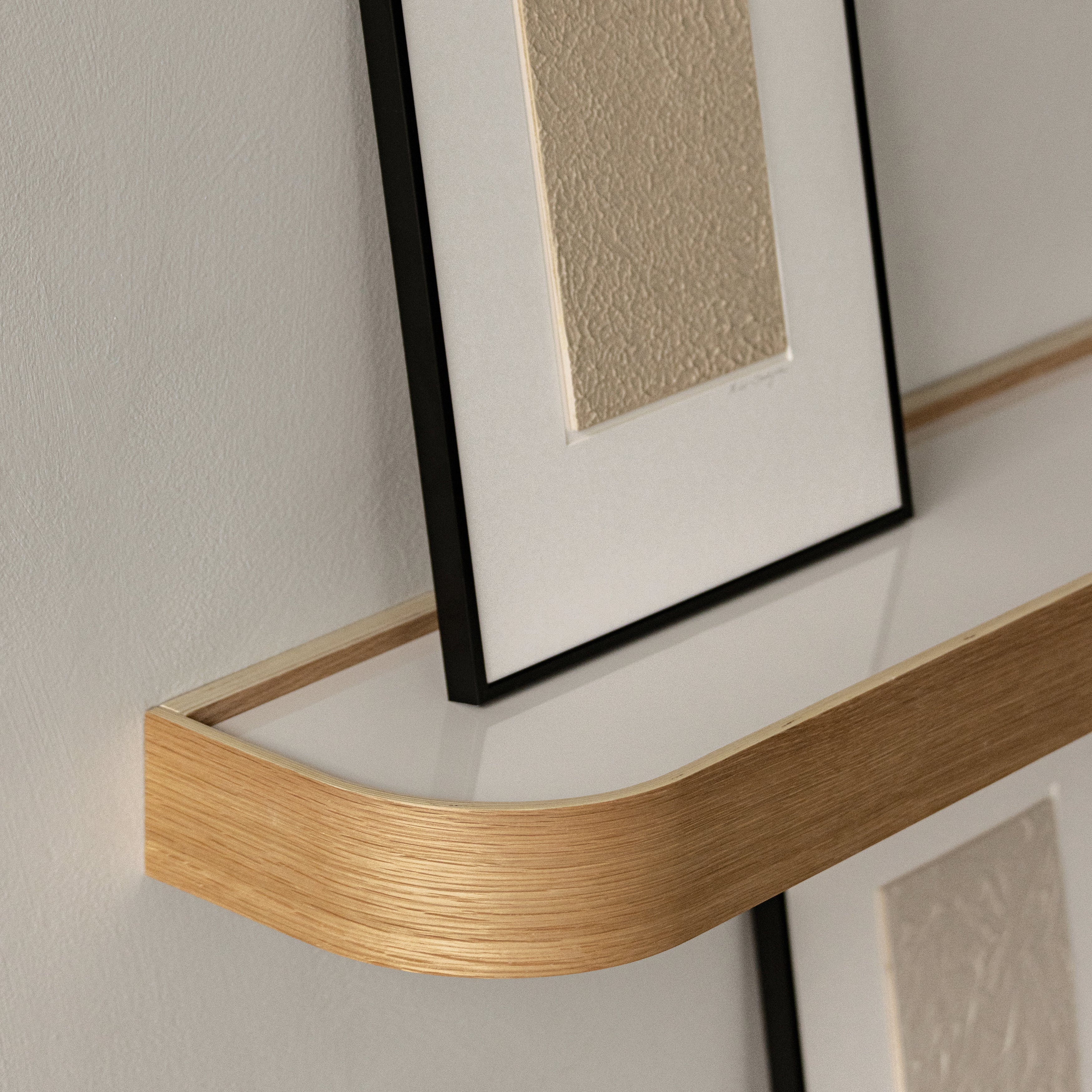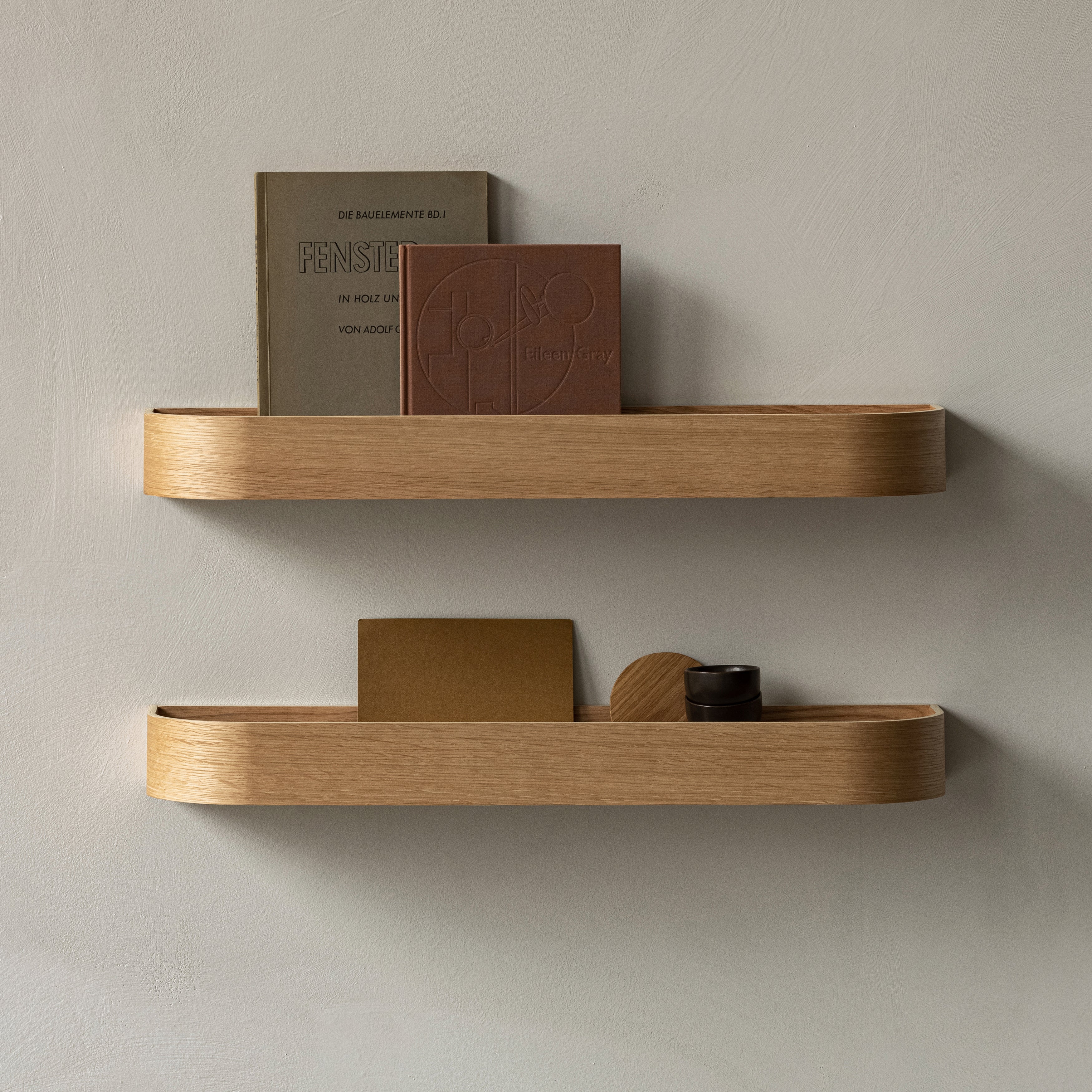 Designer Nina Bruun pitches a curve with her streamlined wall shelf in rich oak veneer. Epoch features a dual function, with a deep rim on one side to hide everyday clutter reversing to reveal a raised surface for displaying decorative objects—and it's just as strikingly deployed alone as in rows of multiples. (Shelf also coordinates with a sister coat rack, also at A+R.)