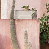 Ferm Living extends its Bauhaus-inspired outdoor planter with a rounded model for the balcony. Its clean industrial look is softened by a palette of natural colors in powder-coated, weatherproof galvanized steel. Easily mounted on a rail, the box's dual hooks and metal bracket hold it securely and it has a carefree smart drainage system with a built-in reservoir.