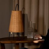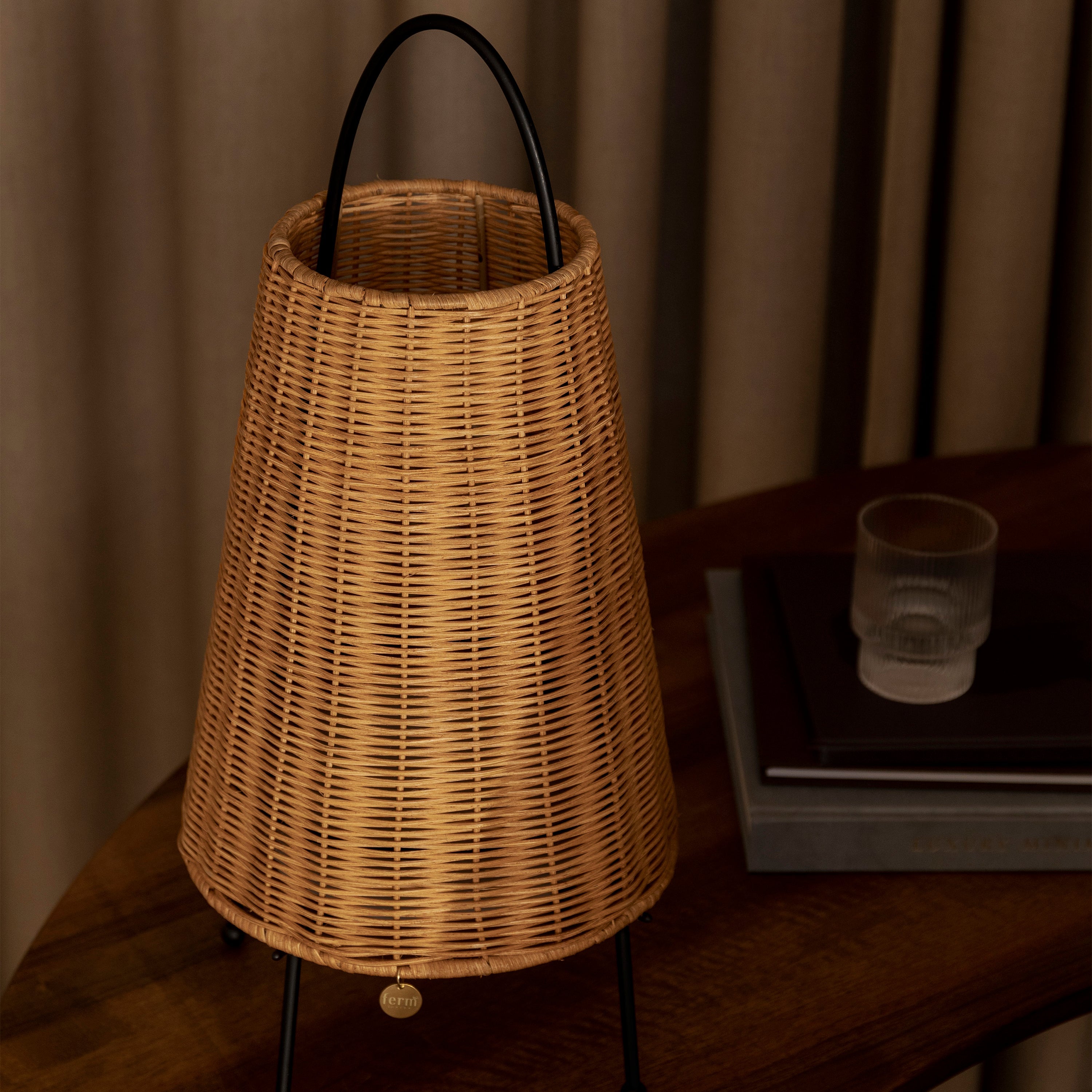With a charming lantern shape, Porti displays a braided rattan shade that rests on slim metal legs, with adjustable feet to align the lamp on uneven surfaces. The base features a hover-touch function for controlling the light intensity from the LED dome as well as for turning the lamp on and off with just a gentle tap.