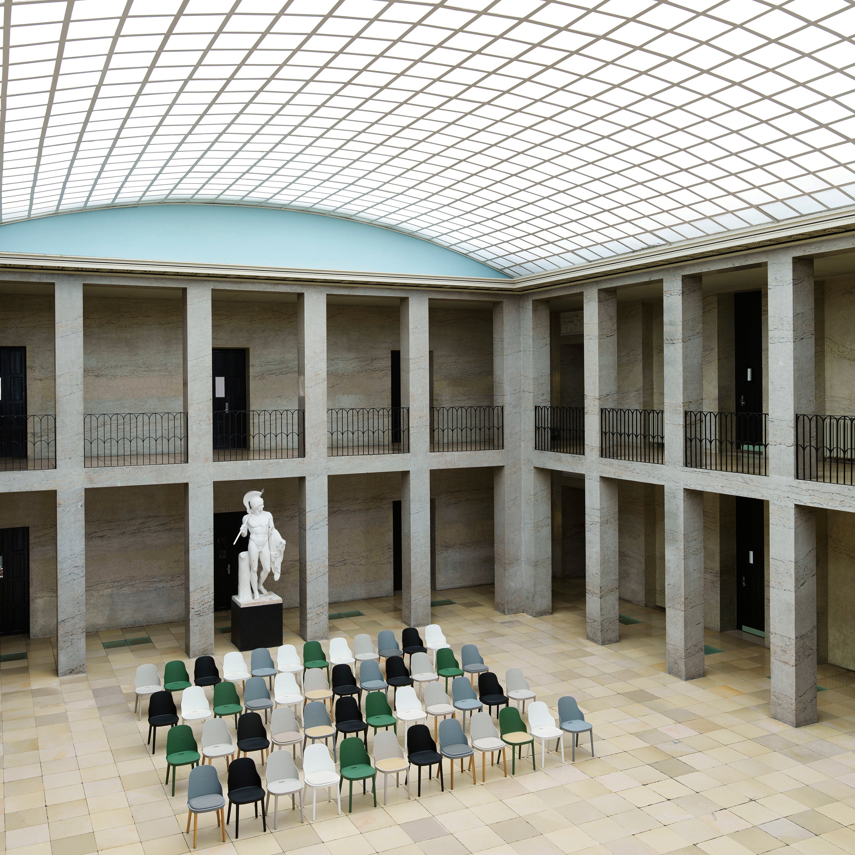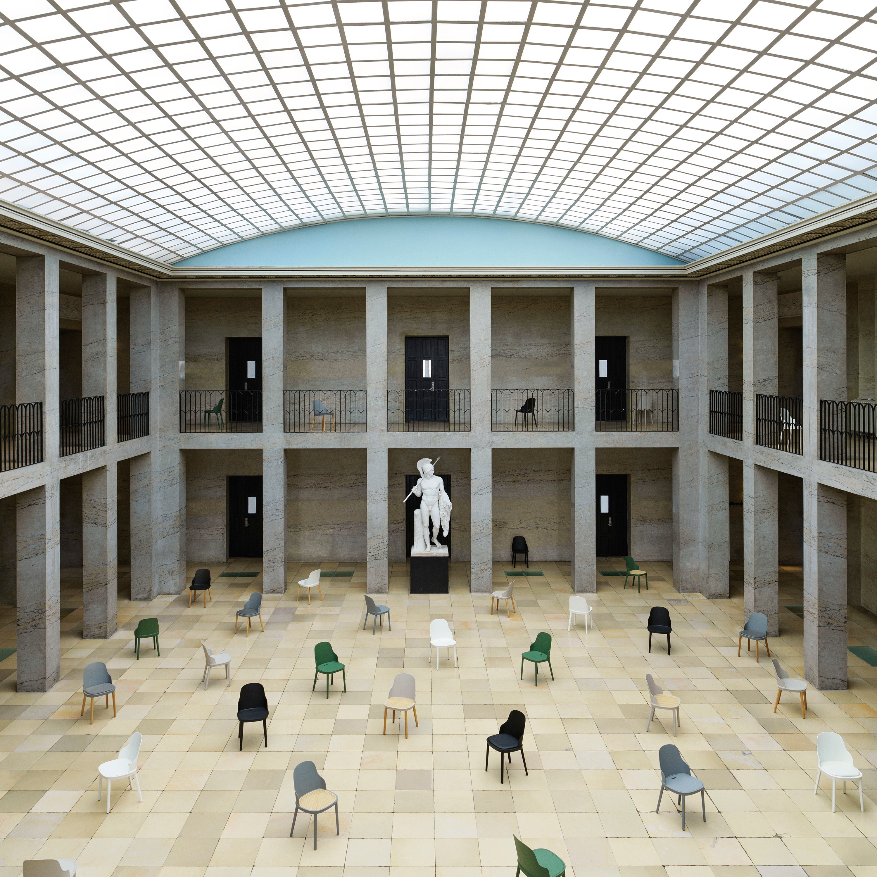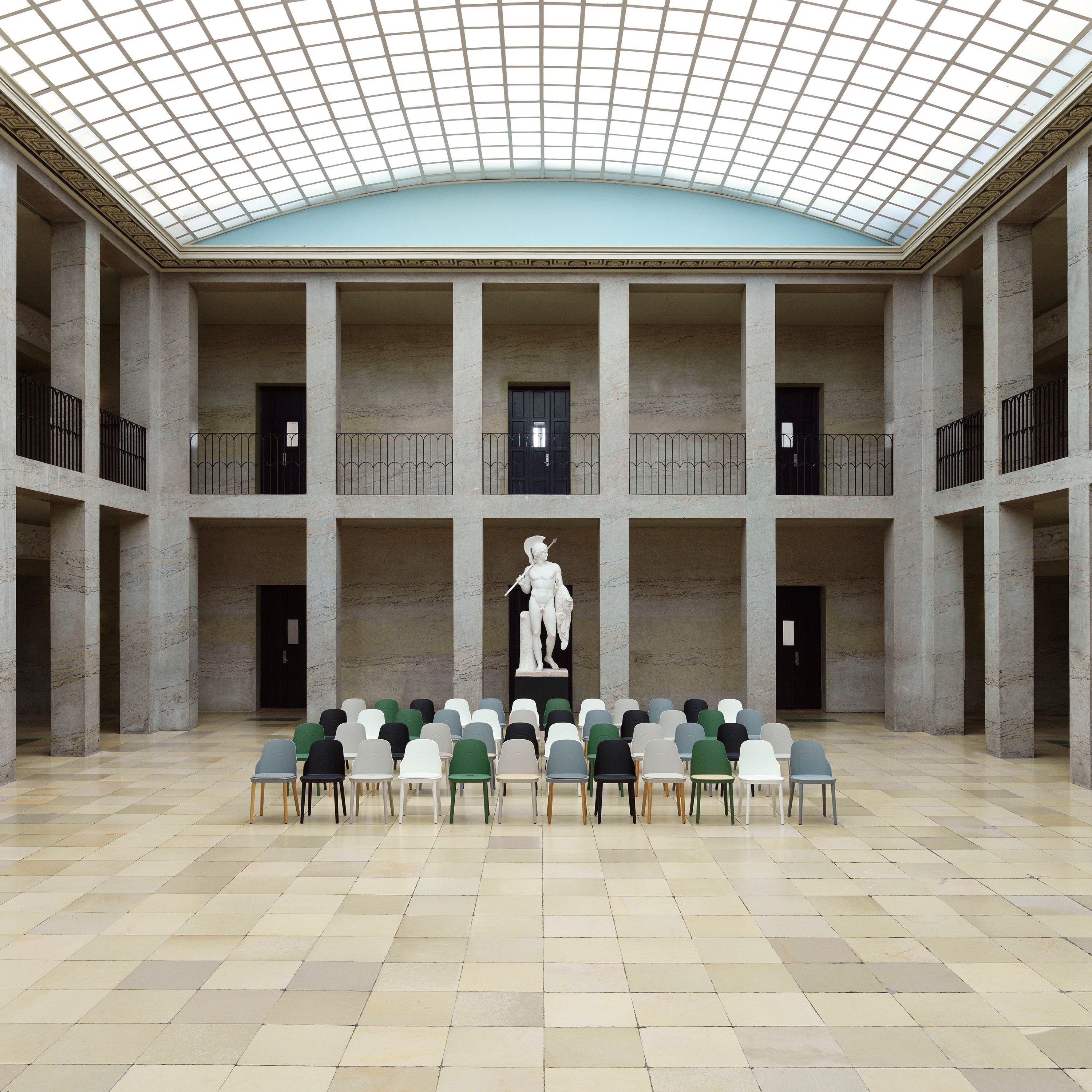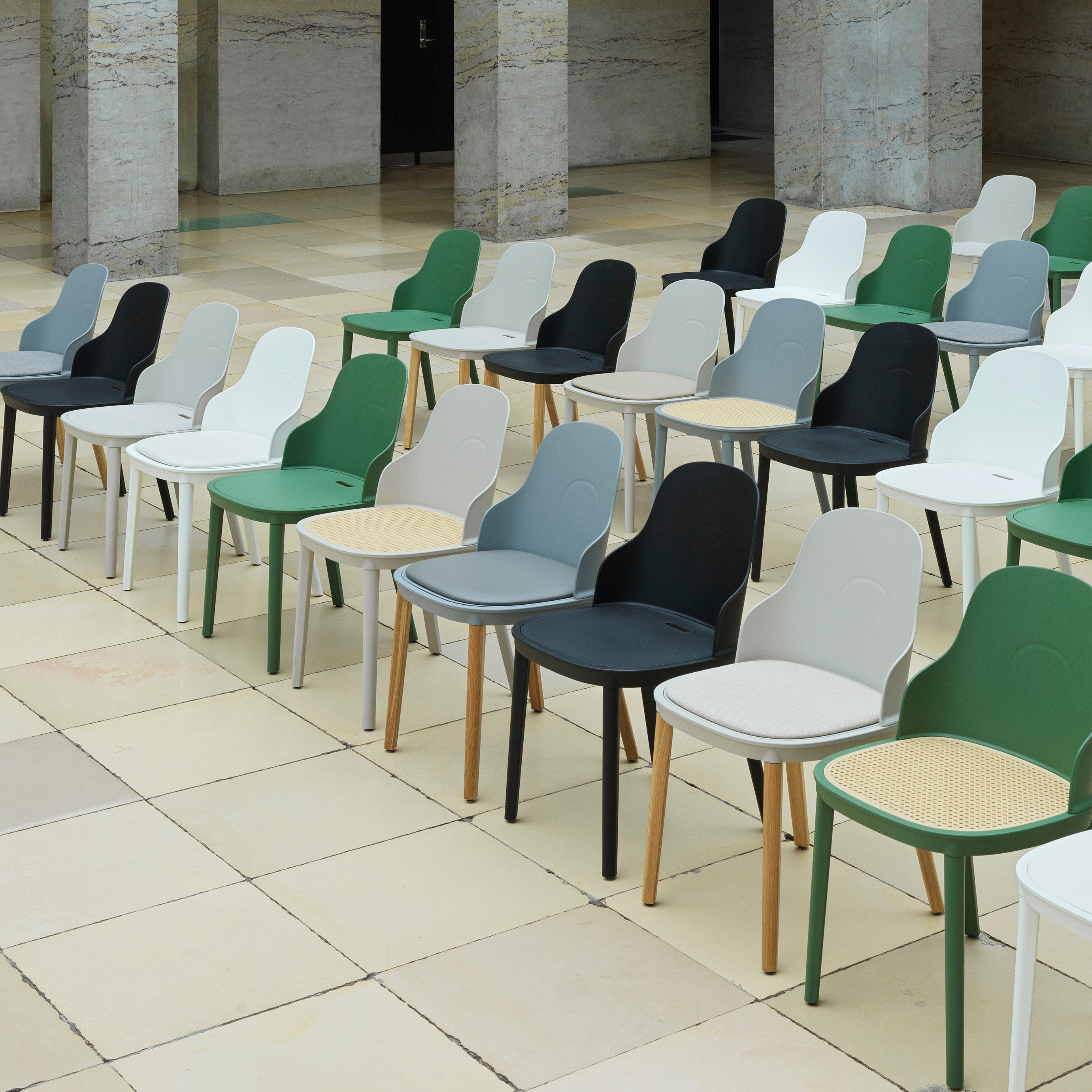 Normann Copenhagen offers an updated take on a café chair that even gives a nod to the bistro classic's traditional woven seat. Along with the comfortable curve of the reinforced backrest, designer Simon Legald details Allez with a lookalike caning effect, all fashioned in molded polypropylene. The chair features a choice of plastic legs for indoor-outdoor use or lacquered oak. Delivered sustainably flat-packed. (Assembly manual included.)