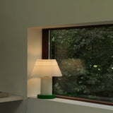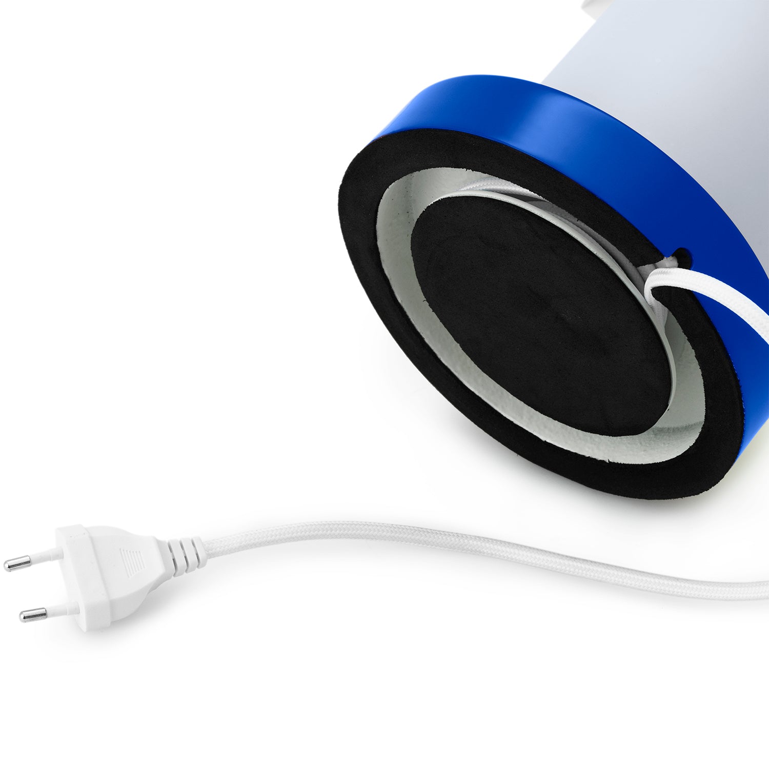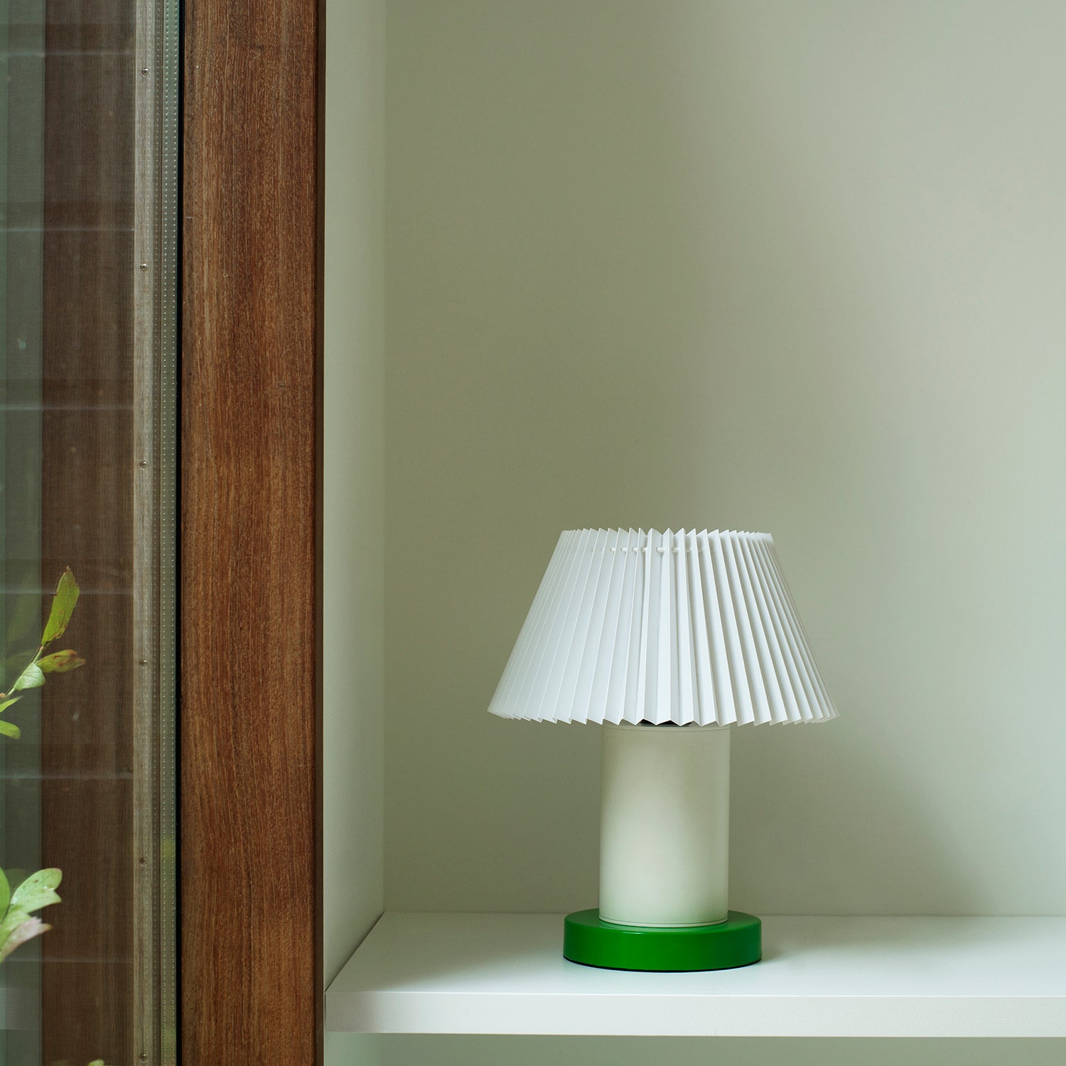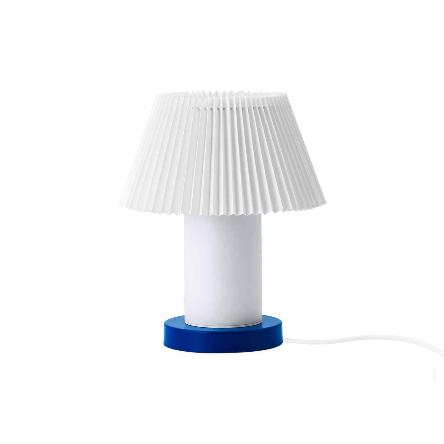 Cellu offers a decidedly non-traditional take on the classic pleated lampshade, made from PVC for extra durability and gently diffusing the illumination. The body of Simon Legald’s table lamp takes form as a fat aluminum column and steel disc base, both with a powder-coated finish in a choice of playfully paired color combinations.