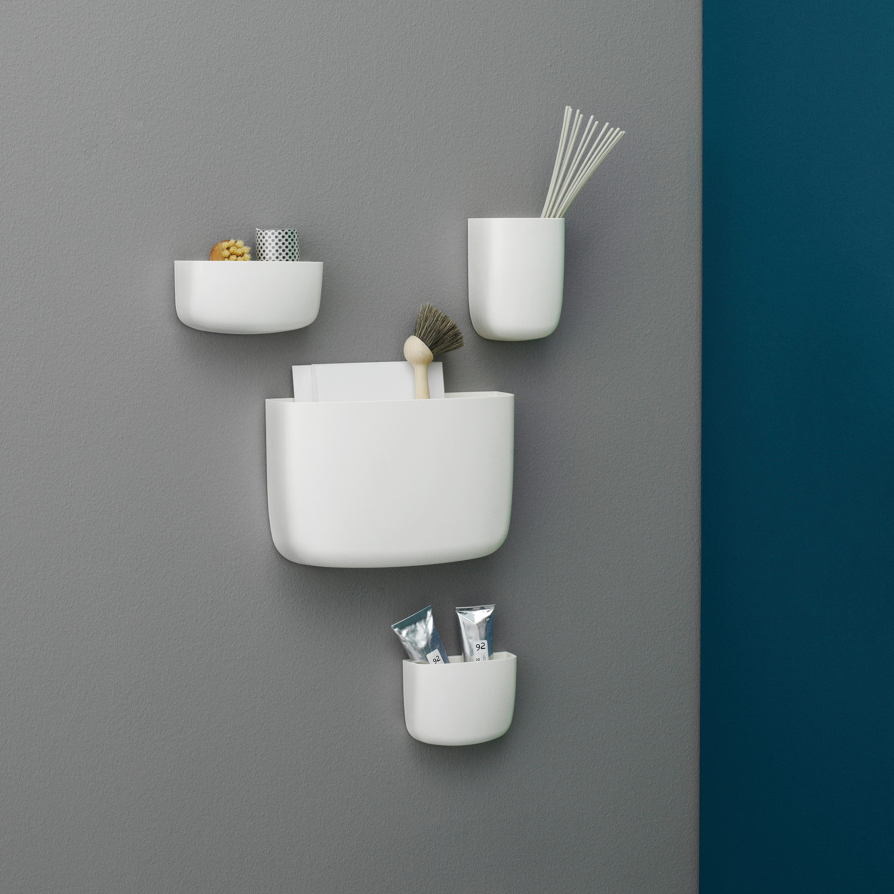 Pick the Pocket for a hi-style take on multifunctional wall-mounted storage. Danish designer Simon Legald's curvilinear organizer for Normann Copenhagen was originally inspired by a bulging-full shirt pocket. Useful anywhere around the home, it can hold everything from letters and magazines to office supplies to kitchen utensils to name just a few of its countless functions. Handy in both tight spaces or in larger areas, especially when deployed in multiples as a storage system. Mounts on the wall by sliding onto a hidden bracket. And the sleek molded polypropylene organizer is even dishwasher-safe for cleaning.