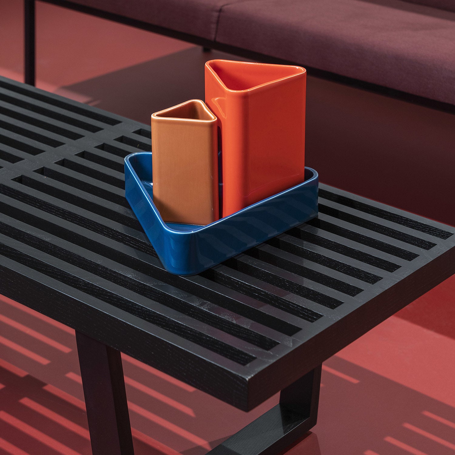 Bold and sculptural, the large Canvas Vase by Raawii transforms a painter’s canvas into a three-dimensional form. Handmade in Portugal from glazed earthenware, its triangular, planar profile invites versatile use—holding flowers, utensils, or art tools, or simply serving as a striking decorative object. Each piece carries subtle variations in glaze and slight irregularities, making every vase unique.