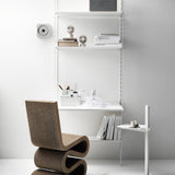 String includes a work desk option in a choice of veneer finish or lacquered MDF. Compatible with the larger 30 cm deep, ladder-like side panels, it can be installed at any desired height. With options like this, Swedish architect Nils Strinning's original 1949 shelf system retains a timeless and efficient standard of versatility.