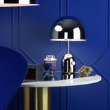 With a gleaming surface that reflects its surroundings, Tom Dixon’s dome-shaded design with its concealed diffuser goes anywhere in this LED-powered portable spin-off. Offering up to 9 hours of soft illumination per battery charge, Bell traverses indoor rooms and outside spaces with ease, its striking contours formed from pressed steel and then plated in a choice of hyper-polished surfaces.