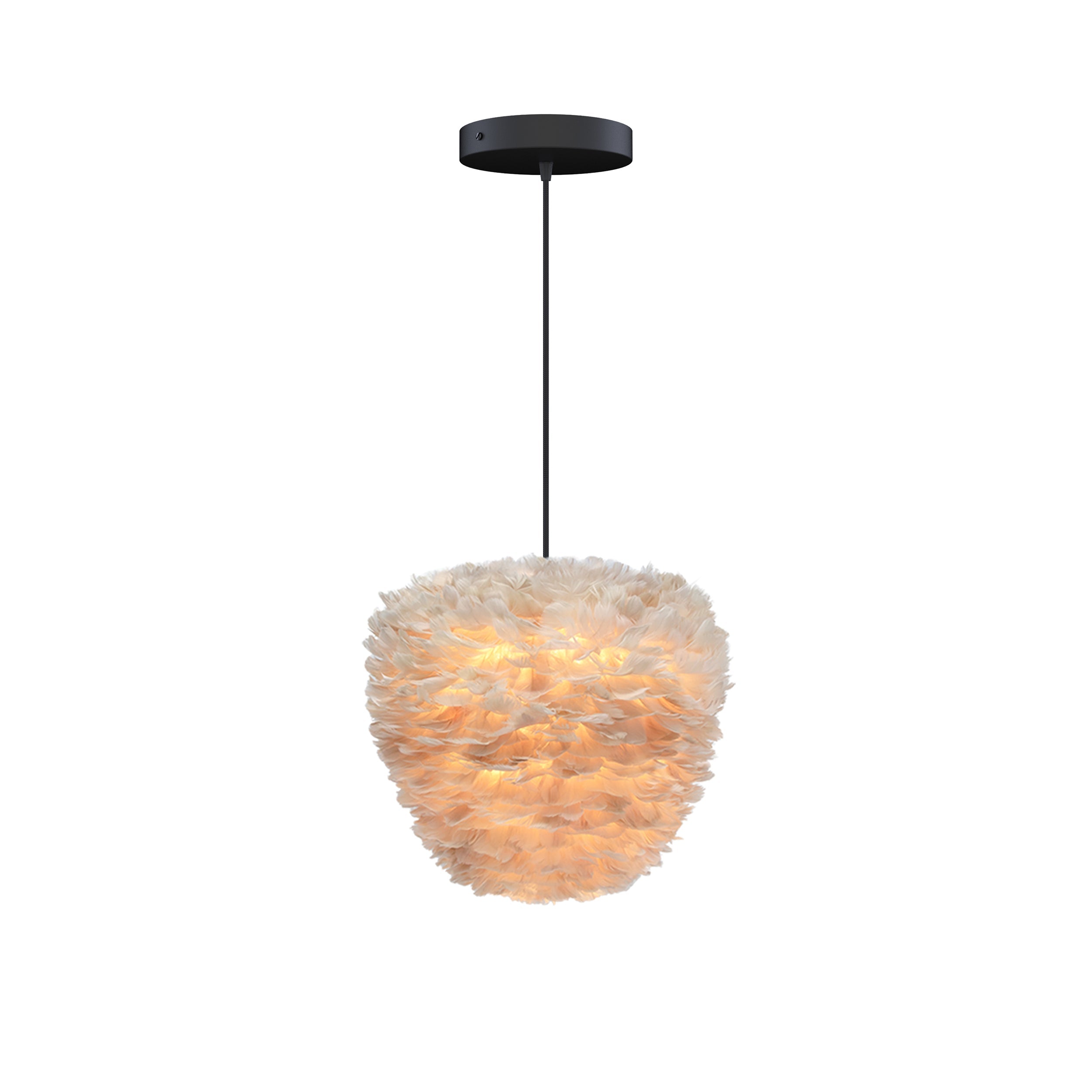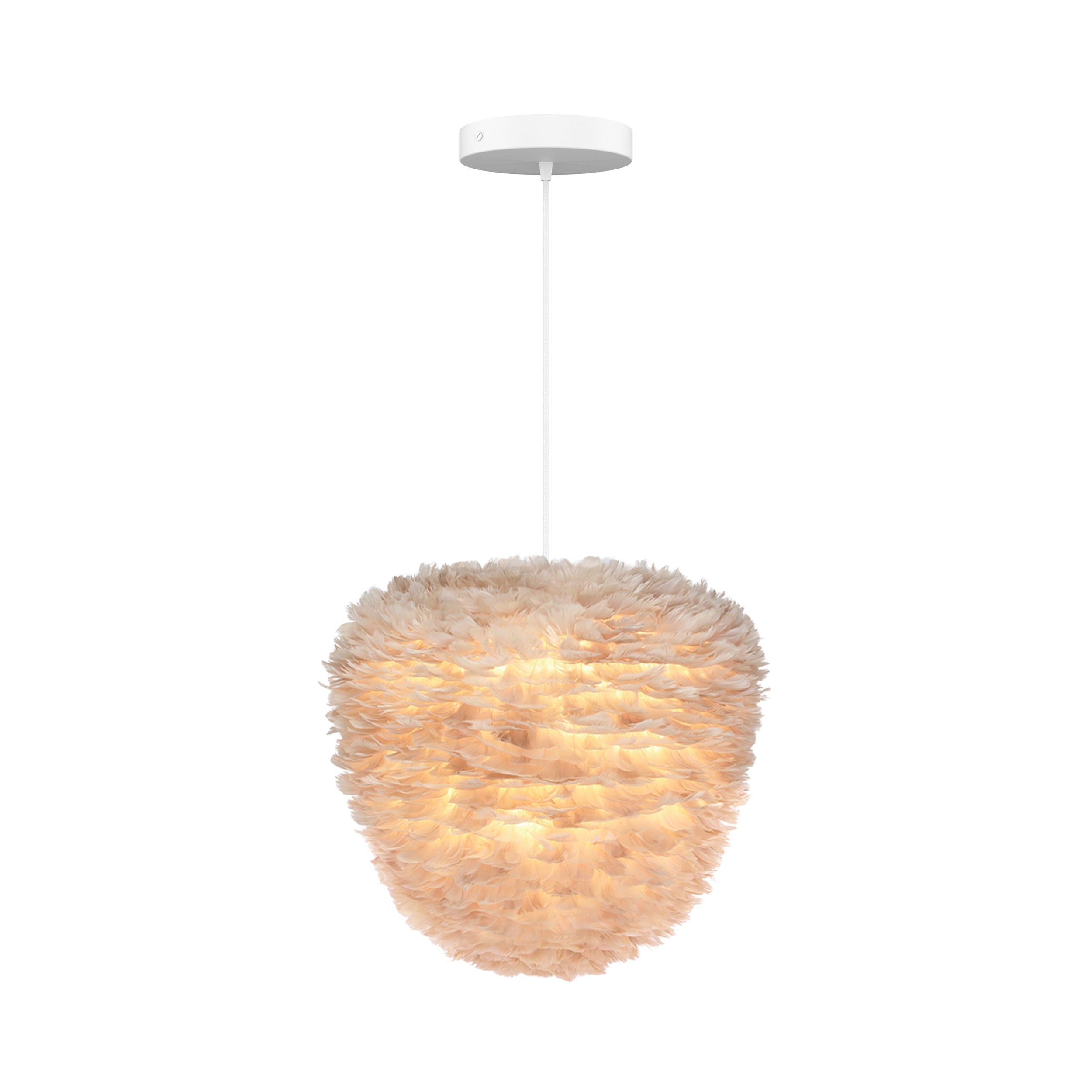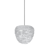 Resembling the shape of nature's beehive, Evia's feathery shade has a cloud-like presence, characteristic of Umages fluffy Eos series suggested by Greek mythology and named for the goddess of the dawn. Designer Soren Ravn Christensen's pendant emits warm diffused illumination and is available in 2 sizes to be situated alone or mixed and matched in clusters with the other varied shapes for a mesmerizing effect. The Copenhagen brand takes pride in its eco-conscious flat-pack shipping and Evia is easily assembled and efficiently cleaned with a hairdryer.