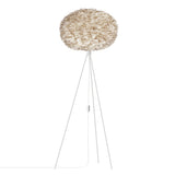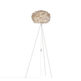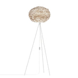 An elegantly elongated tripod base anchors a fluffy feathered light, making for a distinctively dramatic floor lamp. Named for the goddess of the dawn from Greek mythology, Eos is made from recycled goose feathers in a choice of 3 different hueswhite, light brown or light grey for a naturalistic Nordic appeal. Designer Soren Ravn Christensen's creates a welcoming vibe with its diffuse and warm illumination as well as a subtle panache to any room.