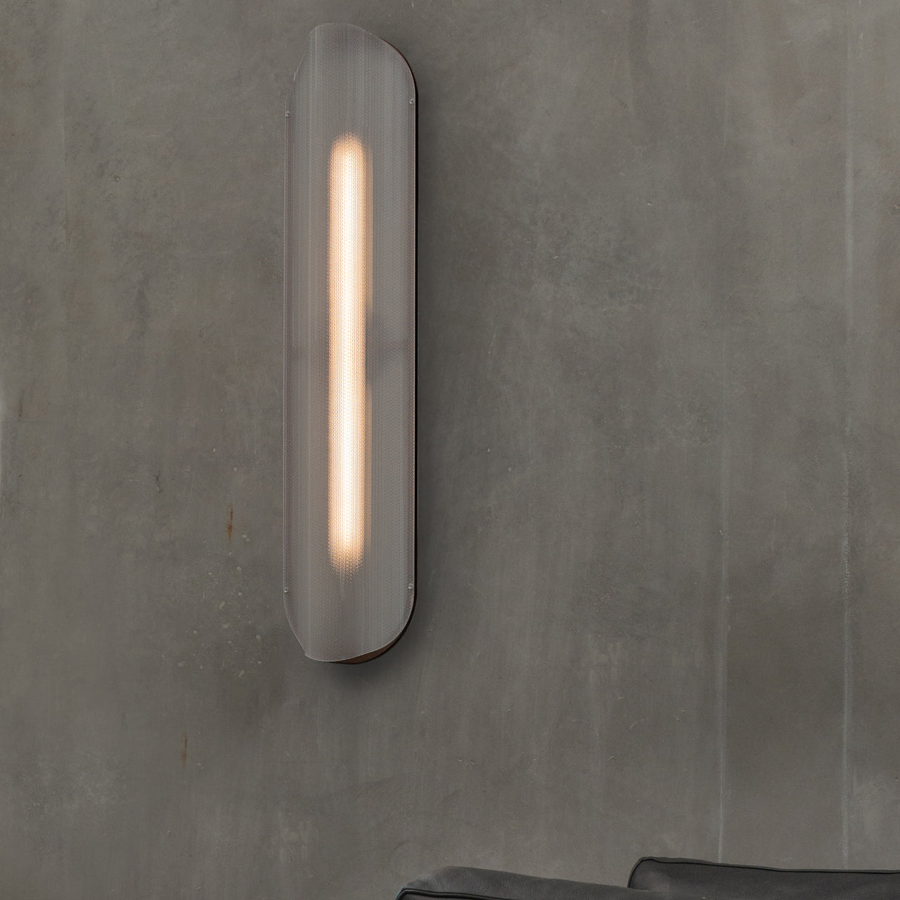 Vale from designer Caine Heintzman also comprises a vertically situated version featuring multiples of the sculptural LED light deployed side-by-side. From a sole model to an awesome bank of 6 fixtures, each light attaches flush to the wall or ceiling with a low-profile aluminum backplate in anthracite, silica or rust finish. The curving front in heat-molded acrylic with a textured surface creates a prismatic effect for softly glowing illumination.