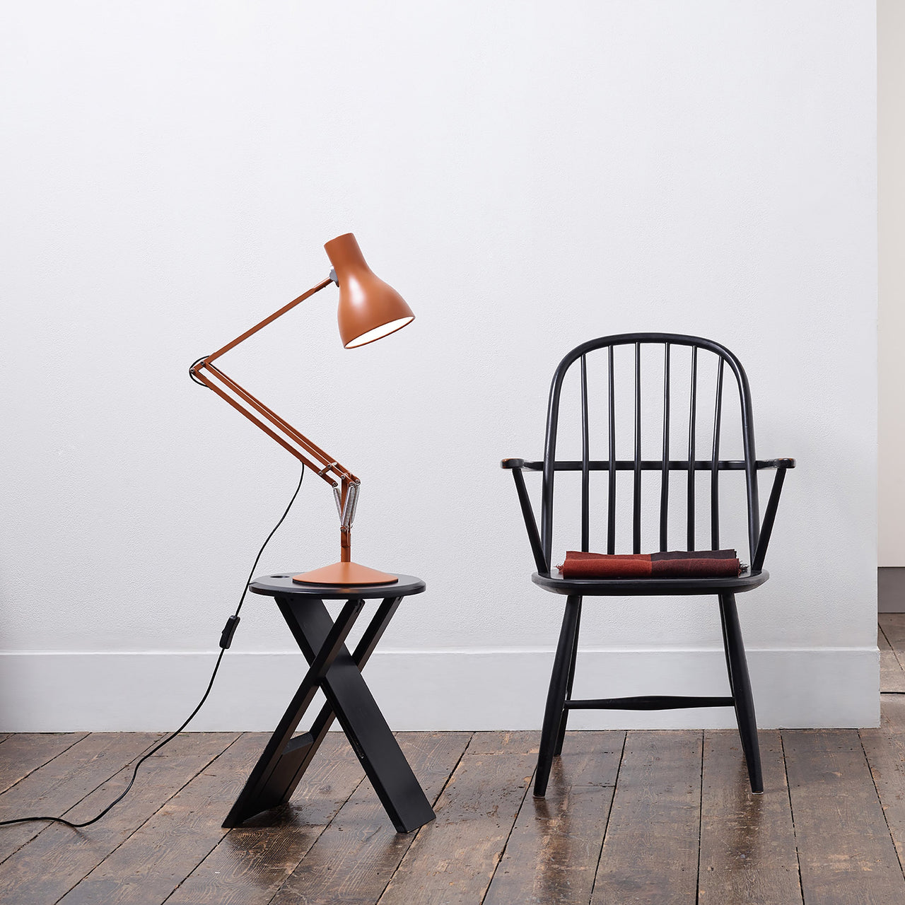 "I've lived with Anglepoise most of my life," Margaret recalls, "school homework under the light of an original black square-based Anglepoise, and later acquiring various colored styles designed in the 1960s and 1970s." Among her treasured Anglepoise lamps is one she rescued from a dumpster, Yellow Apex 90 that would inform the Ochre shade in her namesake capsule collection of Anglepoise's Type 75 lamp.