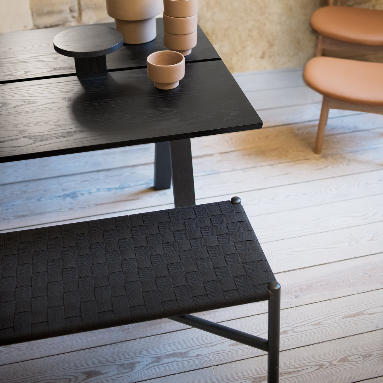 Gabriel Tan’s tranquil Ariake seating collection adds a bench with a textile-strap seat in a basketweave that comes in a range of colors to complement the structure crafted in solid natural oak or stained ash. A harmony of both hand work and advanced machining, it's a versatile player in any number of interior spaces.