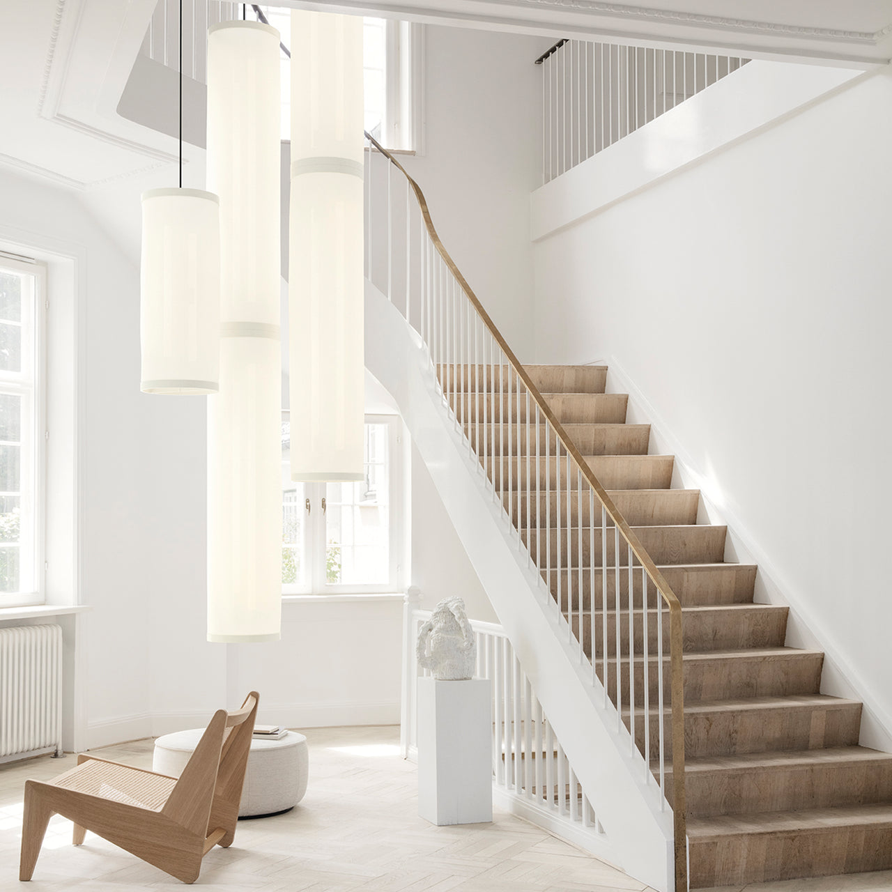 The Isol Suspension Lamp by Astep, designed by David Thulstrup, is a versatile lighting and acoustic solution. The lamp features Snowsound® technology, which gives it exceptional sound-absorbing qualities. The lamp’s design embraces a cylindrical shape, with an aluminum structure and an acoustic-absorbent fabric diffuser. This combination makes it ideal for both private and public spaces, offering both lighting and noise reduction. The Isol Suspension can be used alone or in multiples, where its unique character is enhanced through connected rings to increase its lighting and acoustic capabilities.
