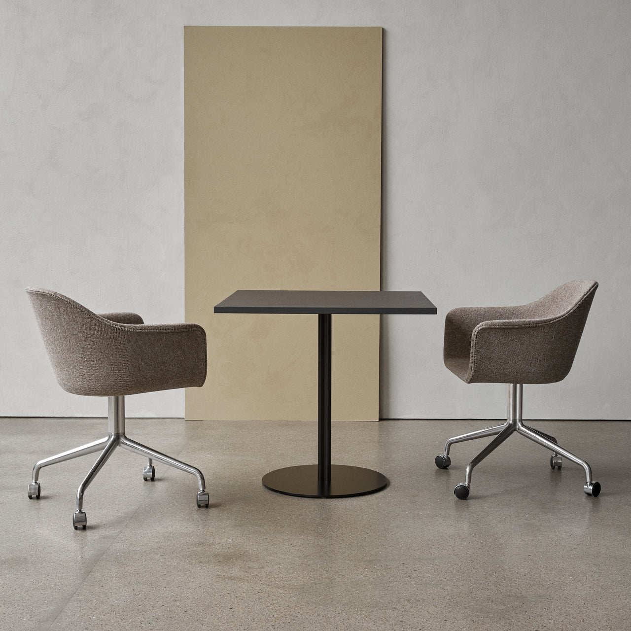 With its unfettered mobility and sheathed in fine leather or textile upholstery, this version of Harbour ticks off all the boxes. Whether destined for a restaurant, conference room, desk or residential space, the versatile armchair exudes impeccable Danish style from Norm Architects. The signature organic shell shape prioritizes long-sitting comfort, with its armrests bent outwards for ease and a high back providing lumbar support. Casters offer nimble movement while the clover-shaped swivel base spins around as needed.