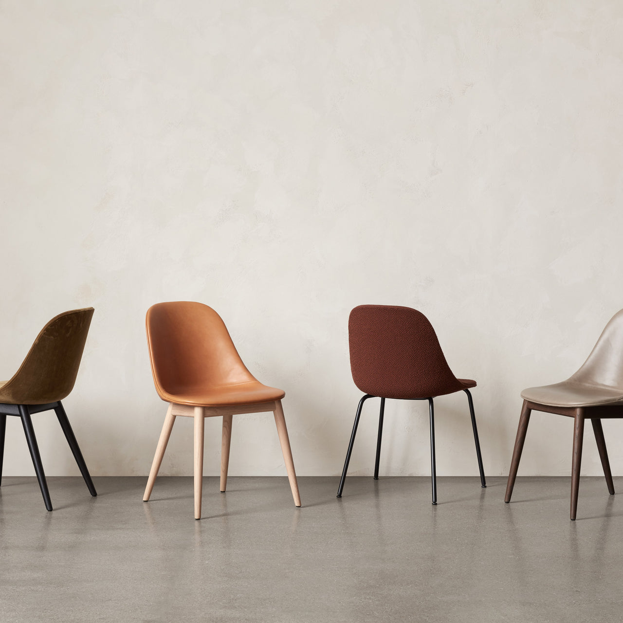 As conceived by Norm Architects for The Audo's creative destination in Copenhagen’s thriving Nordhavn port area, Harbour Side Chair's upholstered version is a study in versatility. With proportions that suit smaller spaces and tuck easily under a dining table, the comfortable molded shape offers hours of seated ease and custom appeal clad in premium fabric or refined leather.