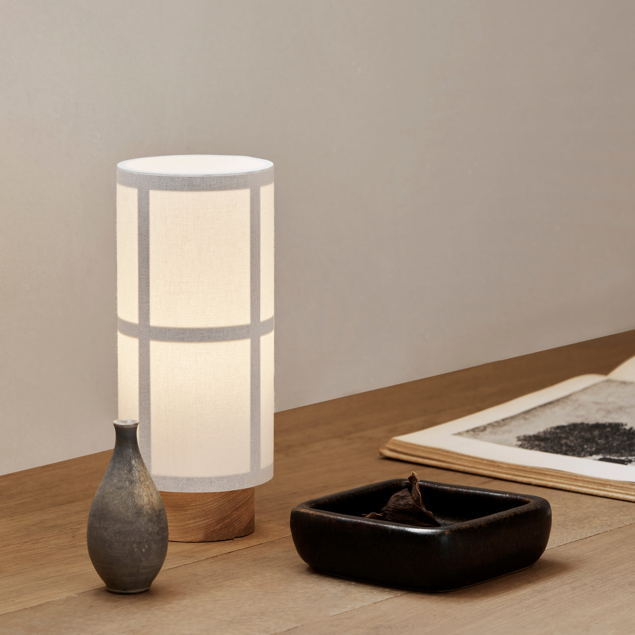 A small-scale take on Norm Architects’ design inspired by traditional Japanese Washi papermakers, the portable Hashira features the same structure, with a welded steel frame, handmade linen shade and sandblasted wood base. Fitted with a dimmable LED, the lamp provides up to 10 hours of light via the concealed USB outlet at the base.