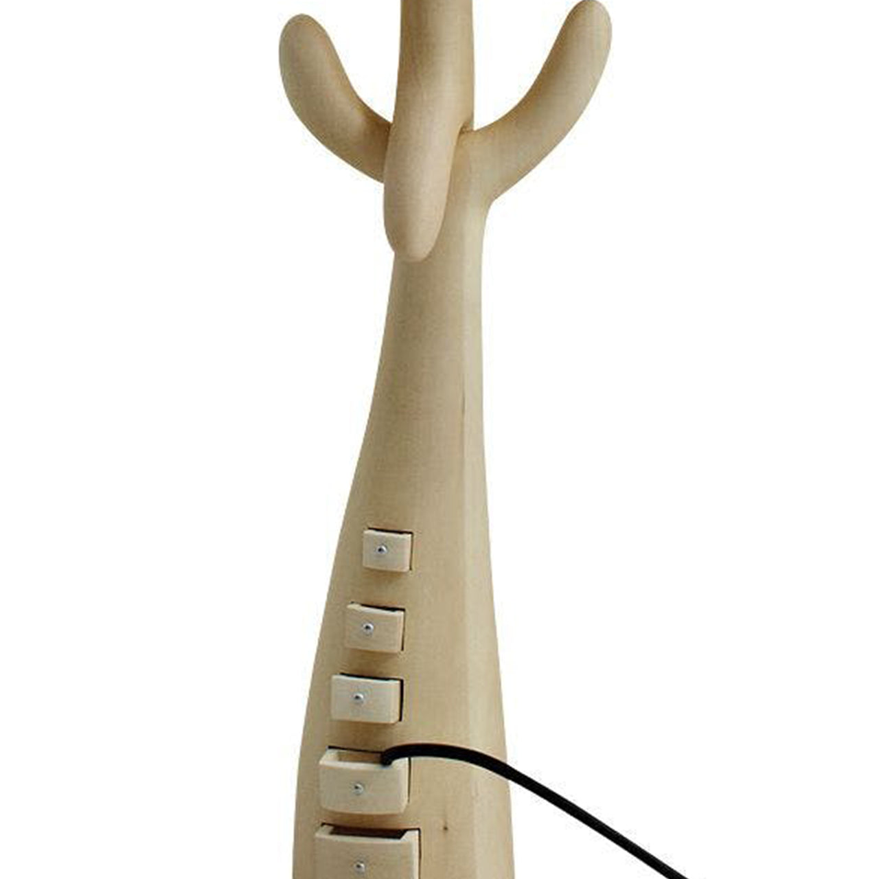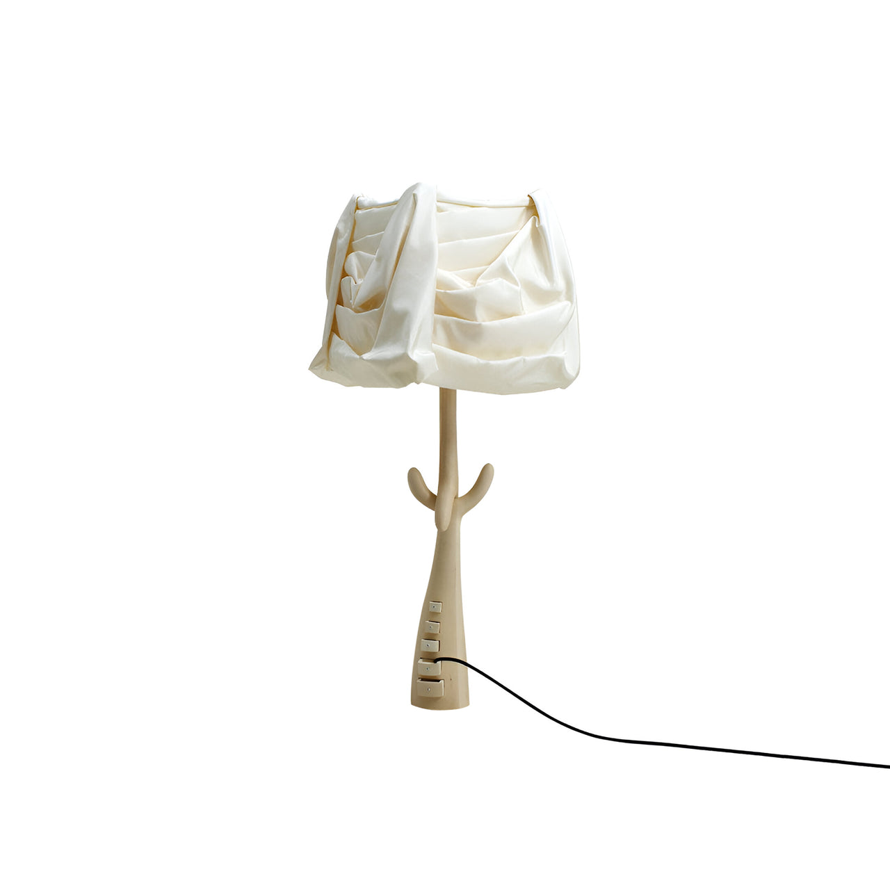 The Cajones Sculpture Table Lamp is conceived as a surrealist masterpiece that blurs the line between furniture and art. The base is crafted from hand-carved limewood, featuring a stack of progressively larger drawers, symbolizing the storage of thoughts and dreams, a recurring motif in Dalí’s work. Each drawer can be partially opened, adding an interactive element to its expression. A slender, crutch-like support extends upward, connecting the sculptural base to the lamp fitting, reflecting Dalí's fascination with crutches as symbols of fragility and support. The piece is topped with a soft, draped linen shade, emitting a warm, inviting glow. A limited Black Label edition offers a more dramatic take, with a black-stained base and a chiffon-covered shade. The Cajones Sculpture Table Lamp serves as both functional lighting and a statement of Dalí's imaginative genius.