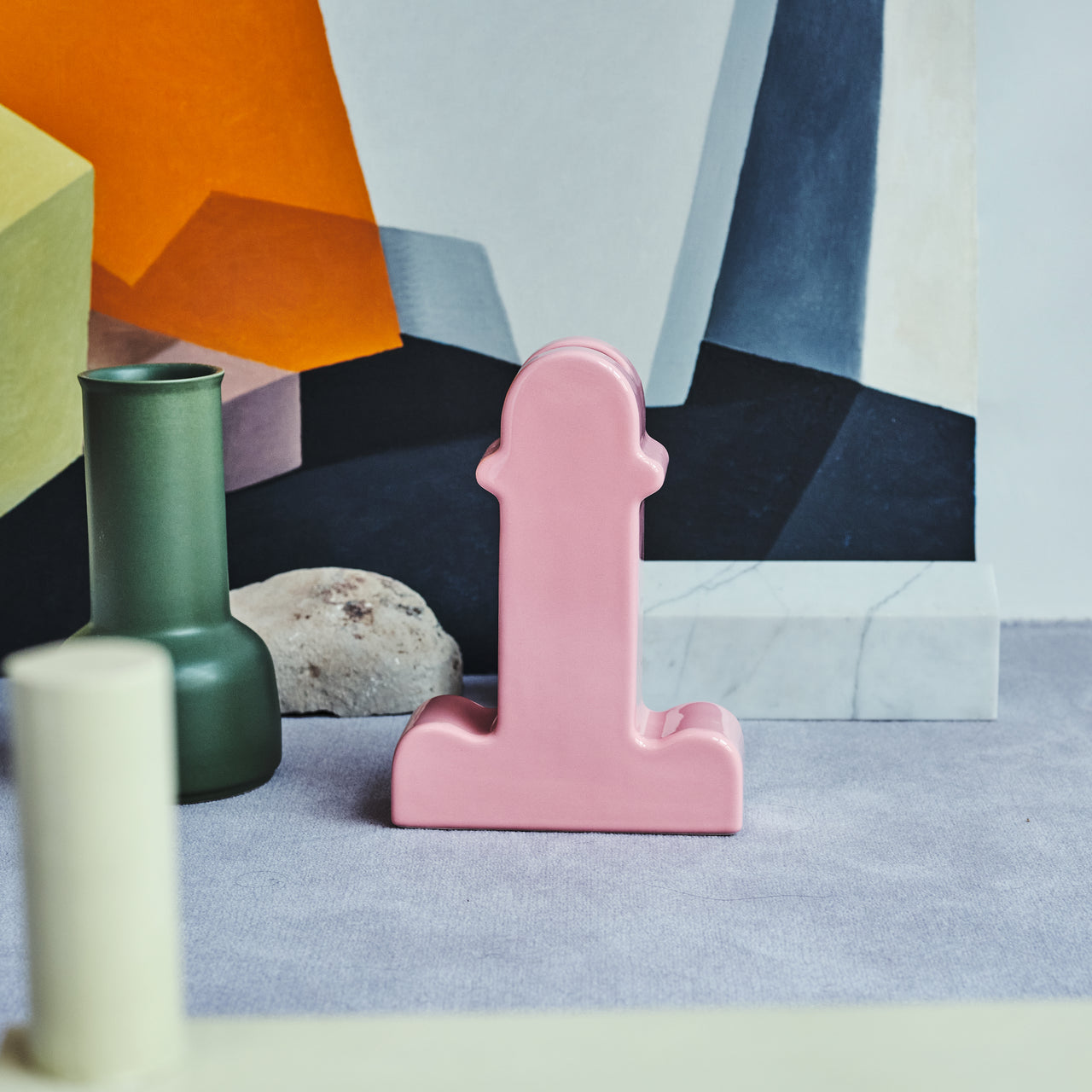 The Shiva Vase, designed by Ettore Sottsass in 1973, is a sculptural ceramic piece inspired by his travels to Barcelona and the Hindu god Shiva. The vase’s clean, symmetrical lines and bright glaze make it a standout piece, offering a striking presence in any space. Whether used for display or as a functional vessel, its sculptural qualities ensure it adds unique character and energy to its surroundings.