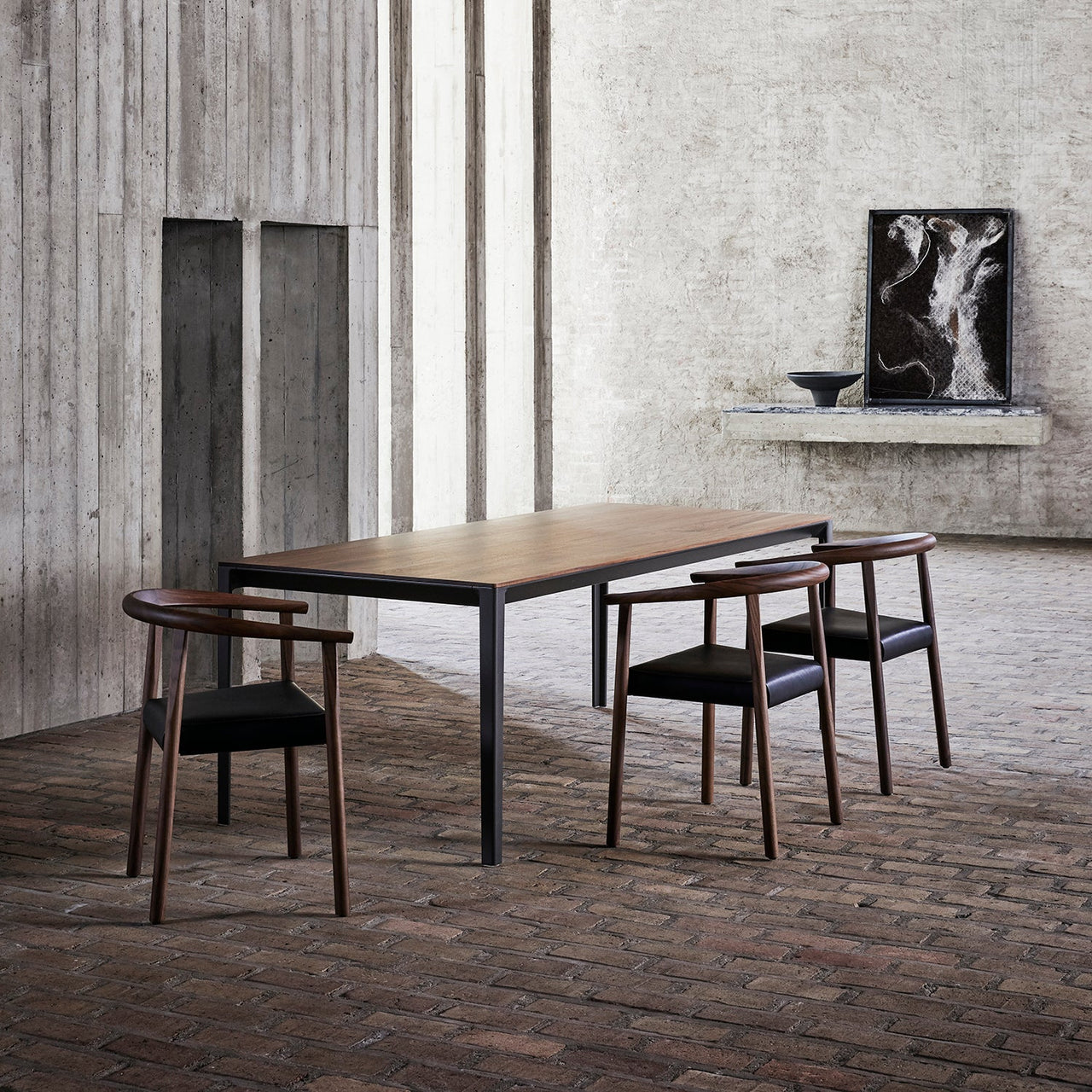 Able's thin beveled edge lends a sense of visual lightness to the range of dining tables from Bensen, the Canadian design group founded in 1981 by Niels Bendtsen, a native of Denmark who originally learned his trade by apprenticing with his father, a Danish furniture designer. Fashioned in cast aluminum, the table frame is as sleek as it is strong—yet it's also remarkably lightweight. With varied available sizes, Able tabletops are offered in wood, marble and Polaris.