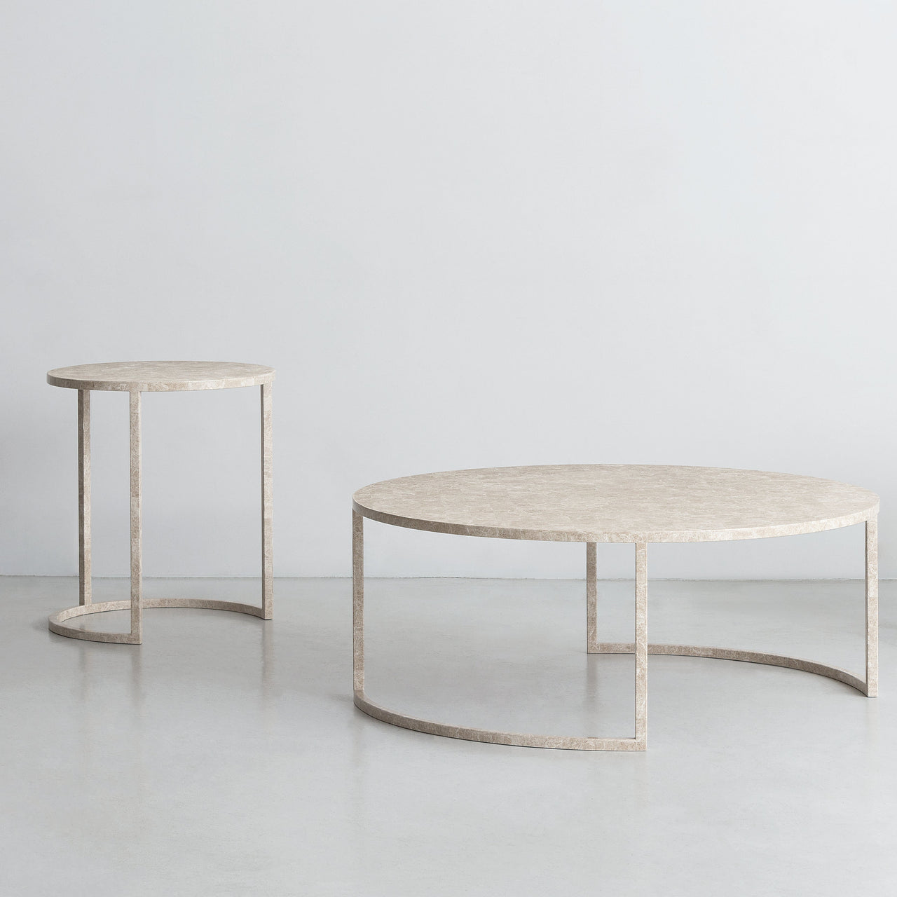 In a stunning round variation, By Interiors adds to its collection of allover marble tables with an unbelievably slim profile. Skilled craftsmanship underlies BK’s geometric proportions, rendered in the inlaid stone with an architectural steel frame. Available in 2 heights with differing tabletop dimensions to deploy singly or in a pair, it comes in milky Carrara, black Marquina Nero or honeyed Emperador marble selections.