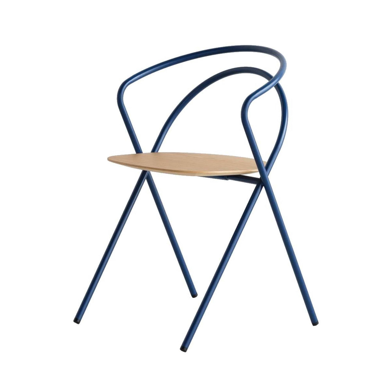 Sleek and stackable, Minima transcends the usual seating of that genre with a fully developed shape in a smooth continuum of 2 lengths of thin steel pipe. Combining fluently curved and straight lines, Spanish design studio MUT assures seating with a unique presence that also melds with a variety of spaces and architectural styles. A powder-coated frame in white, black or ink blue and seat choices in oak or walnut provide varied options for the chair, which can be stored when not needed, stacked up to 5 high.