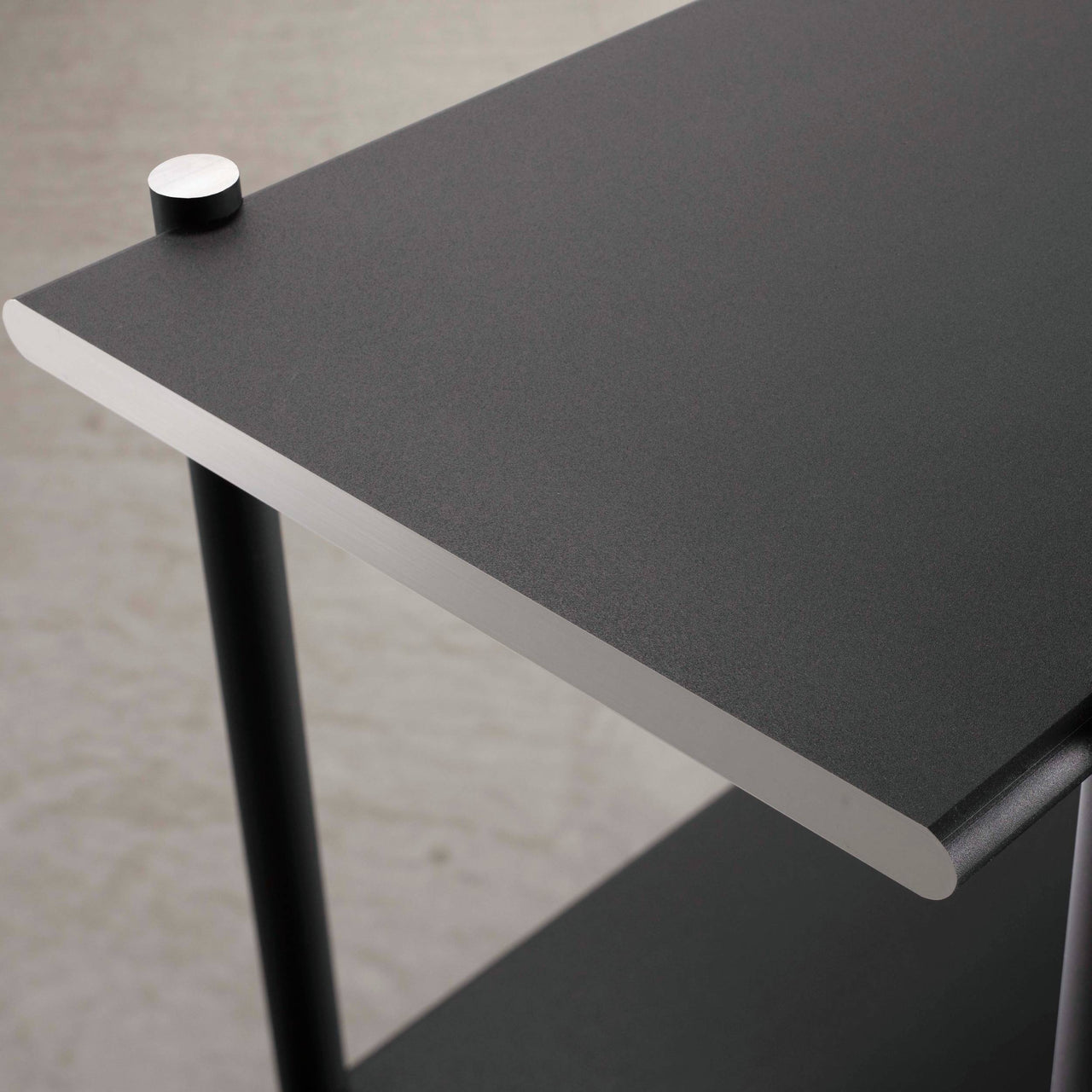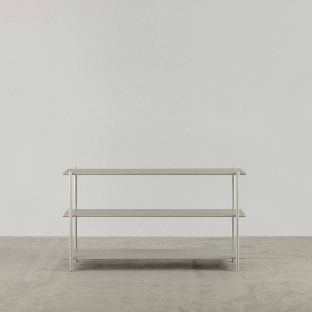 Based in Tokyo, By Interiors often employs aluminum honeycomb-core panels for strength thereby eliminating the need for other structural elements—as in its sleek Muk shelving by Kensaku Oshiro. In a choice of 2 heights and silver, black or champagne finishes, the clean-lined piece achieves a refined character not found in conventional shelves.