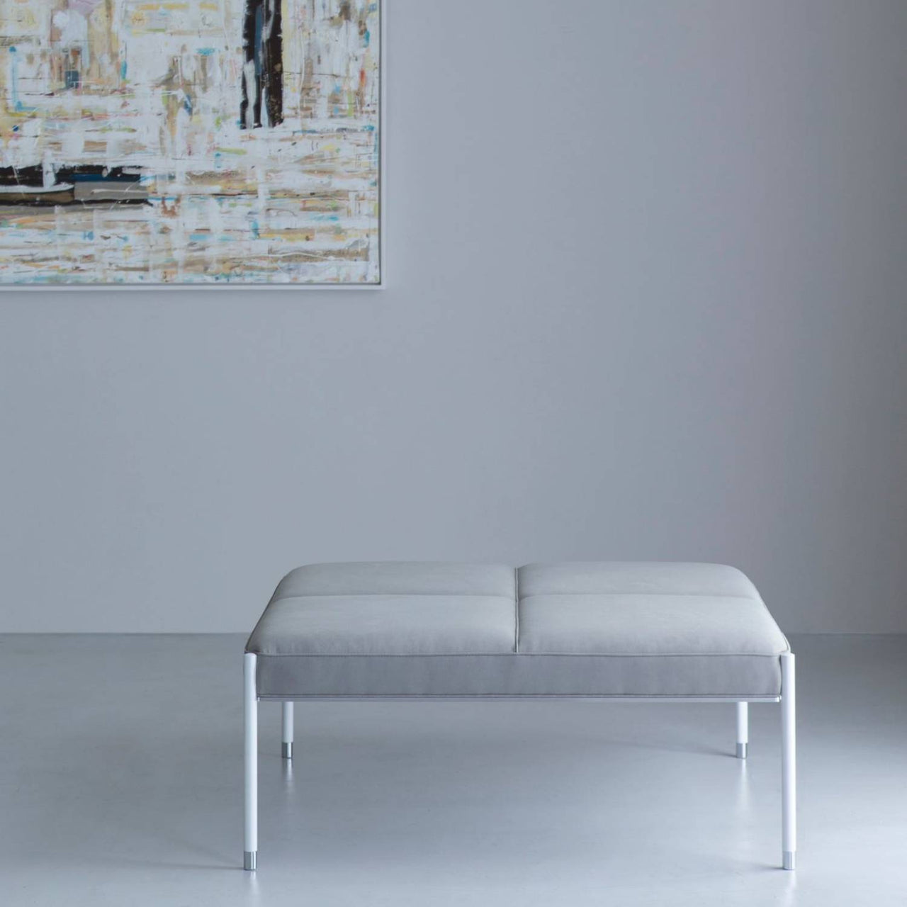 Japanese designer Tomoya Tabuchi employs a novel aluminum honeycomb panel to undergird Twig, allowing for the bench’s ultra-clean silhouette. With the remarkable stability of the airplane-grade material, the bench’s reedlike legs appear to just touch the structure, while a moderately firm upholstered cushion with a silvery profile line emphasizes its geometrics. Powder-coated in black or white with custom upholstery, the bench is equally suited to contract or residential spaces.