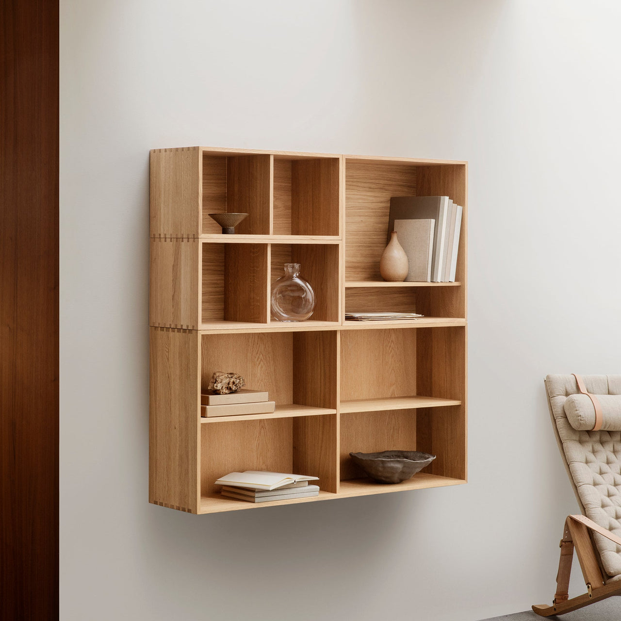 Designed in 1963 by Preben Fabricius and Jørgen Kastholm, FK63 embodies the designers’ uncompromising interest in functional proportions, handcrafted detailing and natural materials. Realized in FSC-certified solid oak, oiled to accentuate the texture and grain of the wood, the wall-hung units feature painstaking tongue and groove construction and flawless finishing. Devised for maximum flexibility, the different modules can be combined in a multitude of ways to suit every space and need.