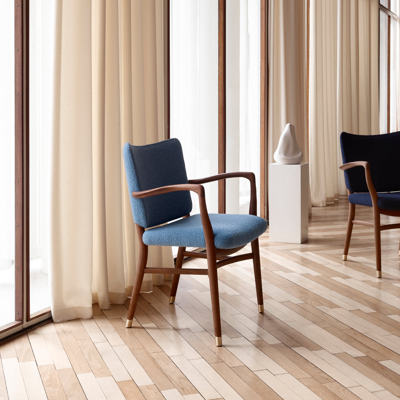 With its unique double-curved armrests and elegant interplay between soft upholstery and the carefully hand-polished frame, it’s no wonder that Monarch Chair designed by Vilhelm Lauritzen in 1944 was inspired by the royalty of the butterfly world. Yet this pioneer of Danish modernism also took a functionalist approach, insisting that form must complement function and carefully engineering VLA61’s beautifully crafted proportions to be so comfortable that sitting in it feels like an embrace.