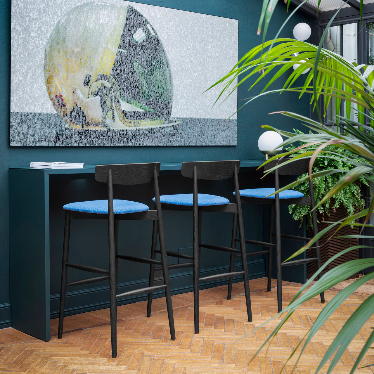 An offshoot of a traditional bistro chair and stackable to boot (up to a height of 5), lovely Claretta retains a certain Parisian character. Yet filtered though Miniforms' modernist Italian sensibility and Munich-based designer Florian Schmid's eye, the stool is a cosmopolitan mix with slender lines and beautifully crafted, turned-wood legs€”in a choice of bar or counter height. And the backrest tilts out slightly towards the top and the upholstered seat is precisely shaped for the utmost in comfort.
