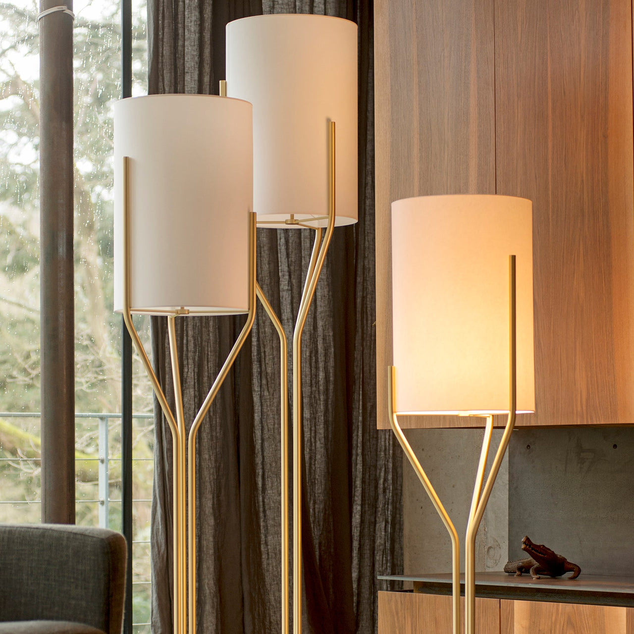 With its tree-like metal base supporting a tall paper-fiber shade, CVL introduces 3 larger versions of its striking floor lamp. From the hand of architect-turned-product designer Hervé Langlais, Arborescence makes a luxurious lighting statement in a series of elevated metal finishes. Choose from polished or satin brass, copper, graphite, or nickel, with the shade available in white or cream.