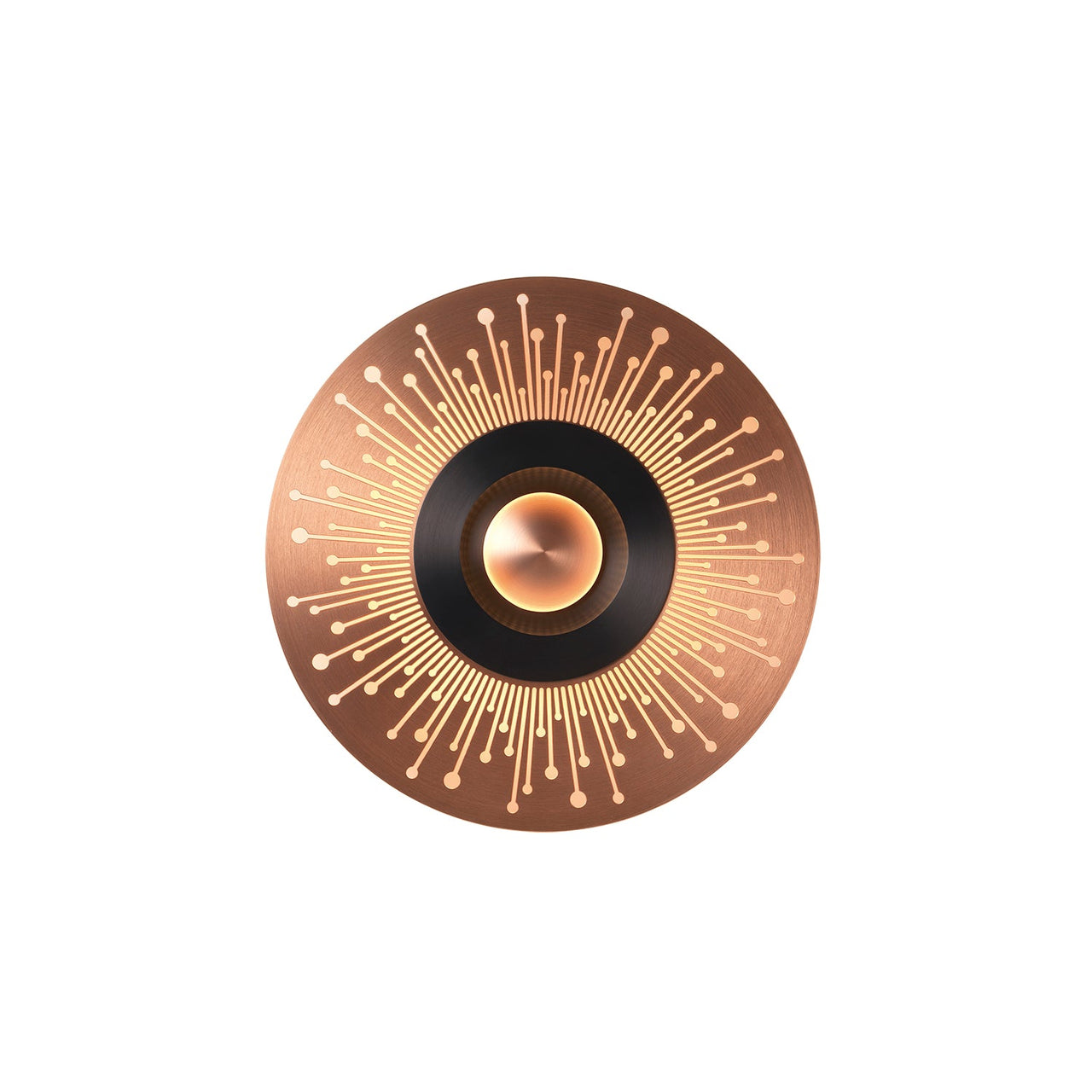 An abstracted pattern of the sun's rays fans out from the illuminated center of this eye-catching variant from the Earth wall light collection. Designer Émilie Cathelineau creates a golden glow with her fixture Sun, leavening the illumination provided by the central LED light source. Artisanal French maker CVL handcrafts this modernist lighting in solid brass, part of a legacy of more than 50 years of finesse from the company located in the Loire Valley.
