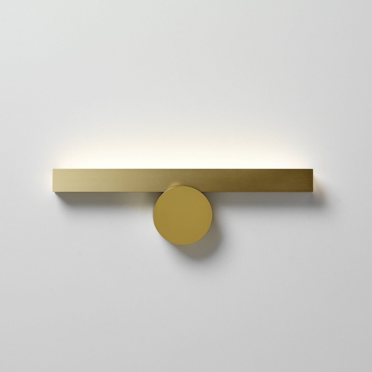 CVL’s horizontal IP Calé(e), like its 2 sibling versions, is designed expressly for use in the bathroom. “Caler" in French means to balance or to hold in place, which aptly describes the geometric equipoise of the wall fixture’s round and linear elements as designed by Paris studio Pool. With an integrated LED light source for warmly even illumination, it’s composed of solid brass in a choice of matte or polished metallic finishes.