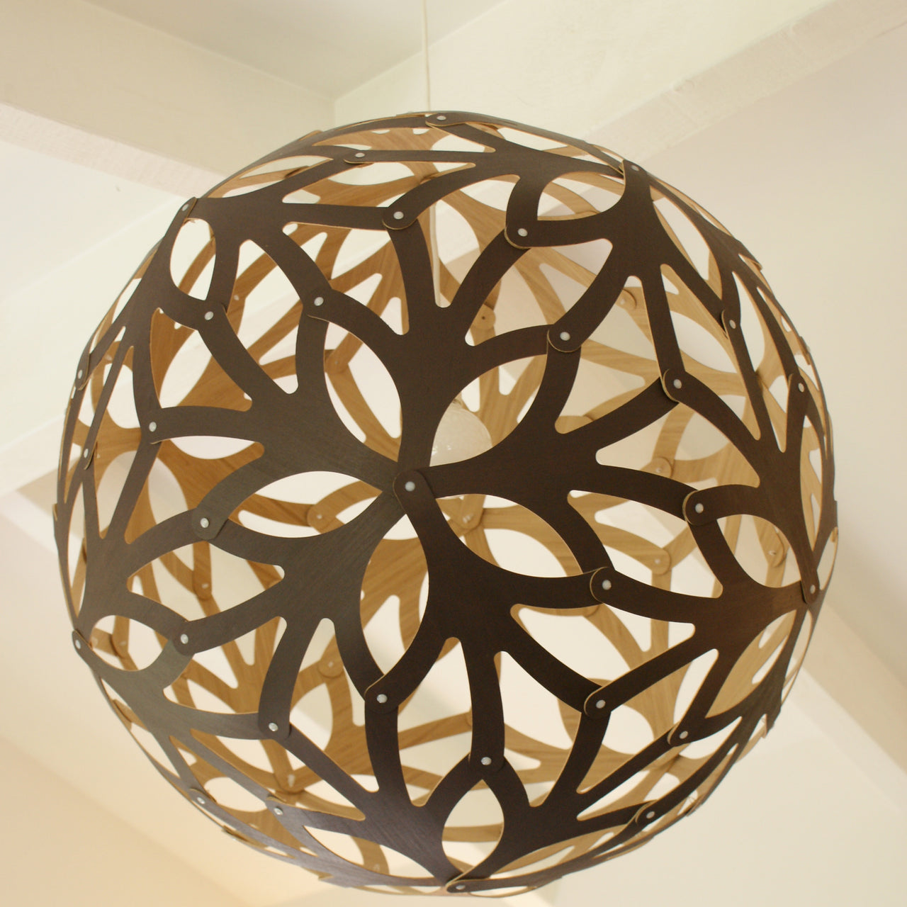 "I photographed this beautiful flower on the Bibulman track in Western Australia," says David Trubridge of this spin on his ball-shaped lamps based on the geometric polyhedron structure. A love for earth drove the construction, flatpacked to reduce freight and packing resources. Identical pieces make home assembly a snap. The celebrated designing craftsman ended up in his adopted home of New Zealand after he, his wife and their two sons sold everything and set off on a yacht for a world adventure. It culminated in 1985 when they decided to remain there. While an artist-in-residence at Hawkes Bay Polytechnic (now EIT), he built a house and suddenly found himself with further commissions. Before realizing homes, lamps and furniture, David left Newcastle University in 1972 with a degree in Naval architecture. His work has appeared in countless museums, including the Victoria & Albert and the Pompidou Centre. That barely scratches the surface of his fascinating story and work ethos.