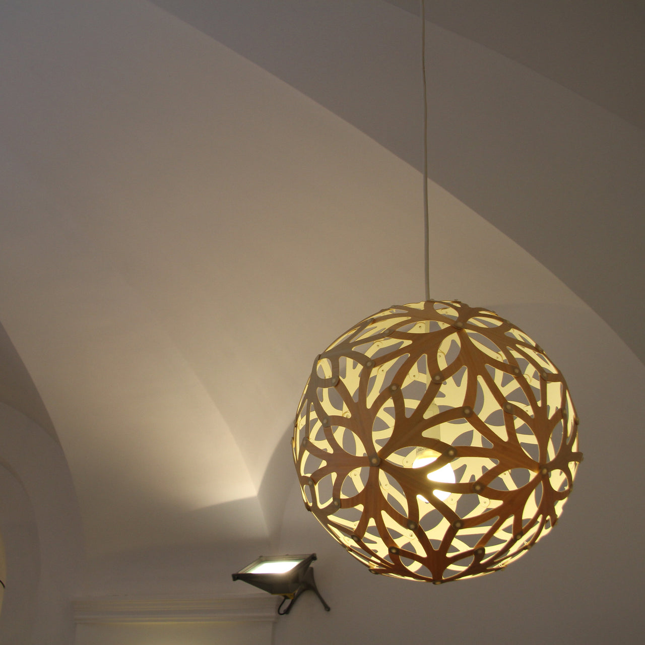 "I photographed this beautiful flower on the Bibulman track in Western Australia," says David Trubridge of this spin on his ball-shaped lamps based on the geometric polyhedron structure. A love for earth drove the construction, flatpacked to reduce freight and packing resources. Identical pieces make home assembly a snap. The celebrated designing craftsman ended up in his adopted home of New Zealand after he, his wife and their two sons sold everything and set off on a yacht for a world adventure. It culminated in 1985 when they decided to remain there. While an artist-in-residence at Hawkes Bay Polytechnic (now EIT), he built a house and suddenly found himself with further commissions. Before realizing homes, lamps and furniture, David left Newcastle University in 1972 with a degree in Naval architecture. His work has appeared in countless museums, including the Victoria & Albert and the Pompidou Centre. That barely scratches the surface of his fascinating story and work ethos.