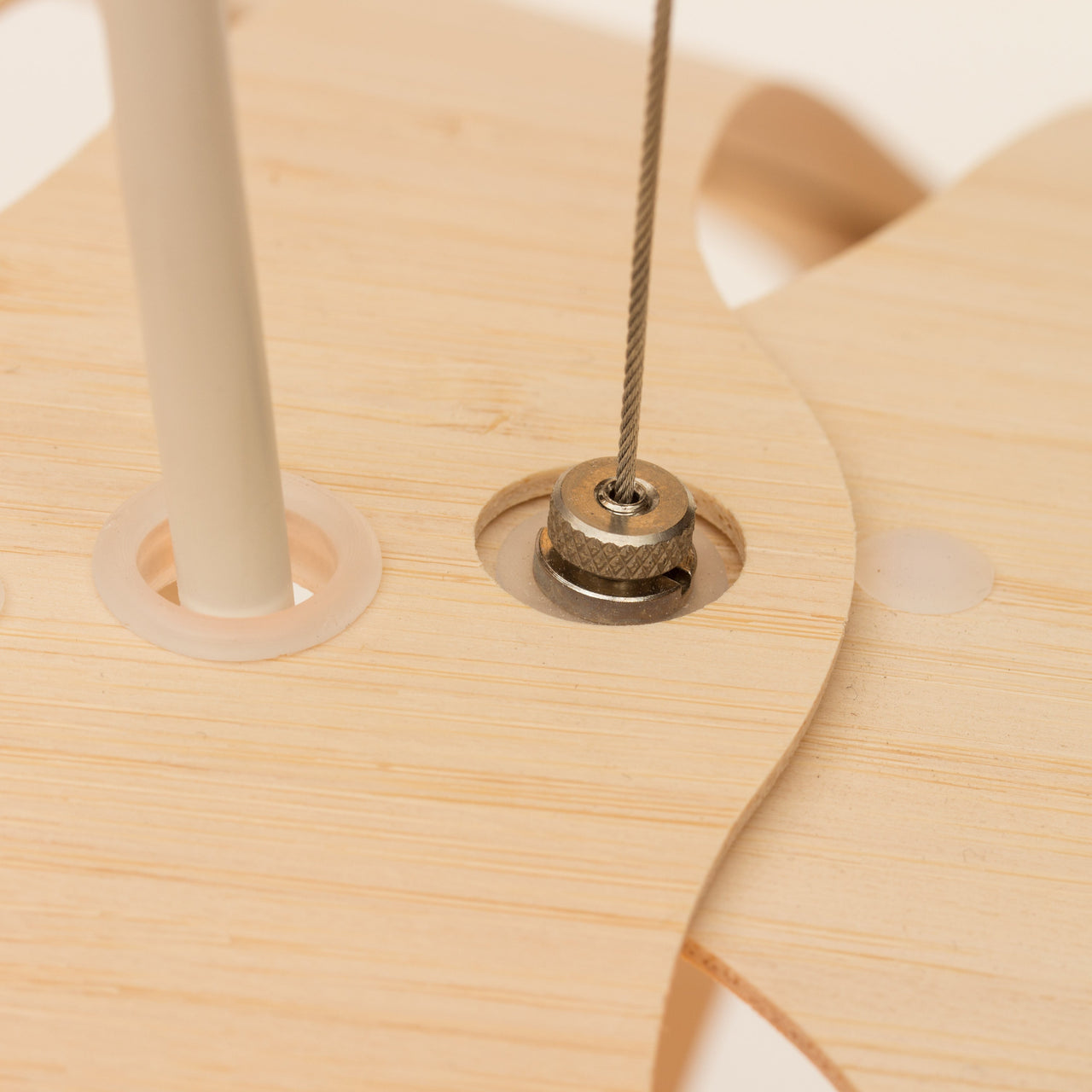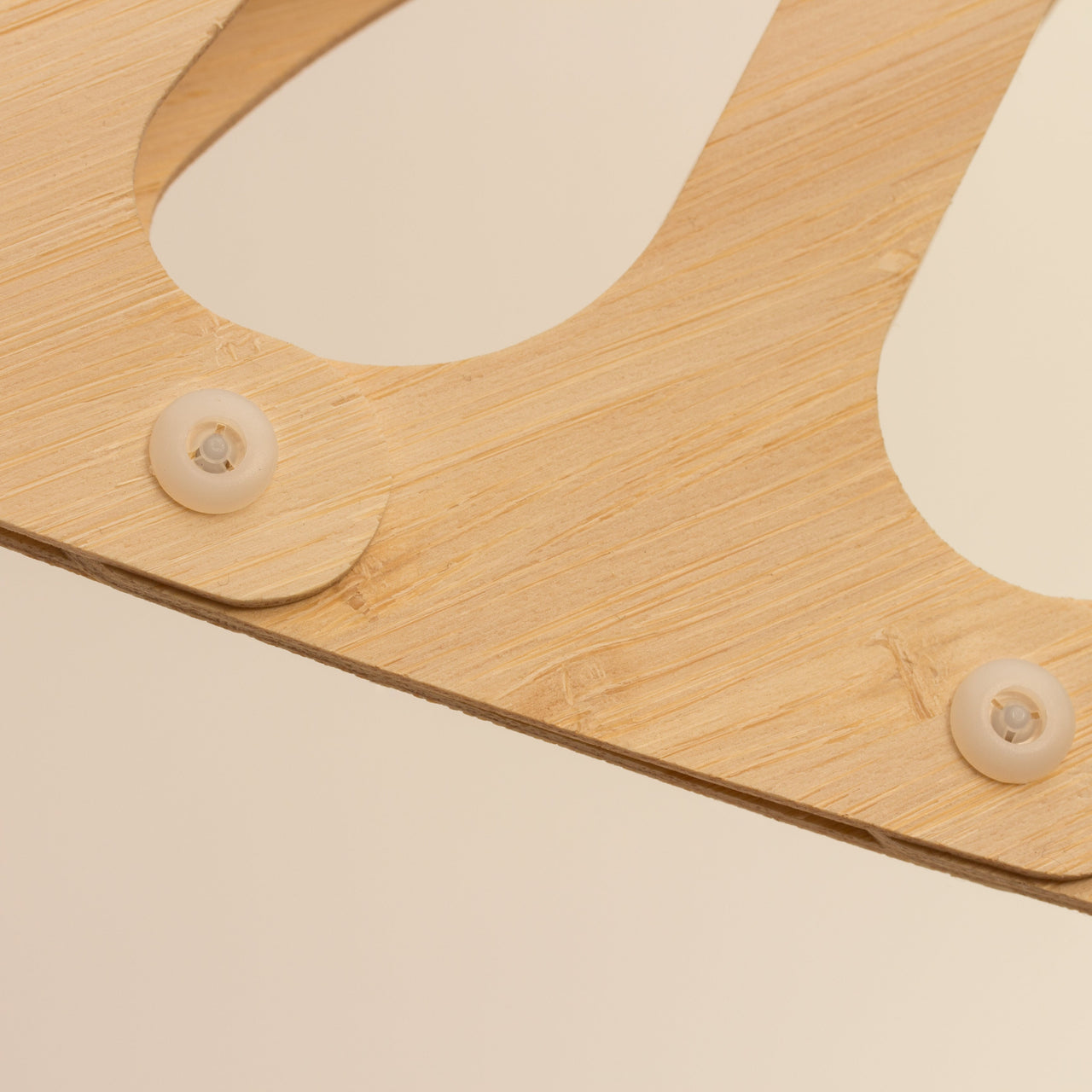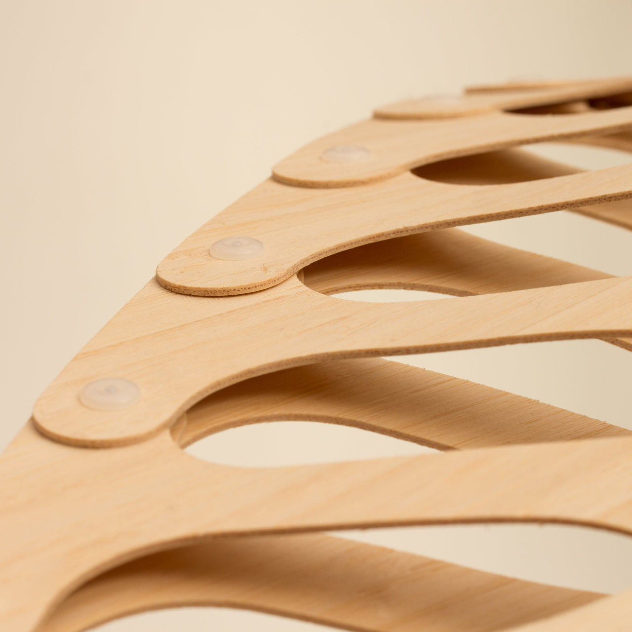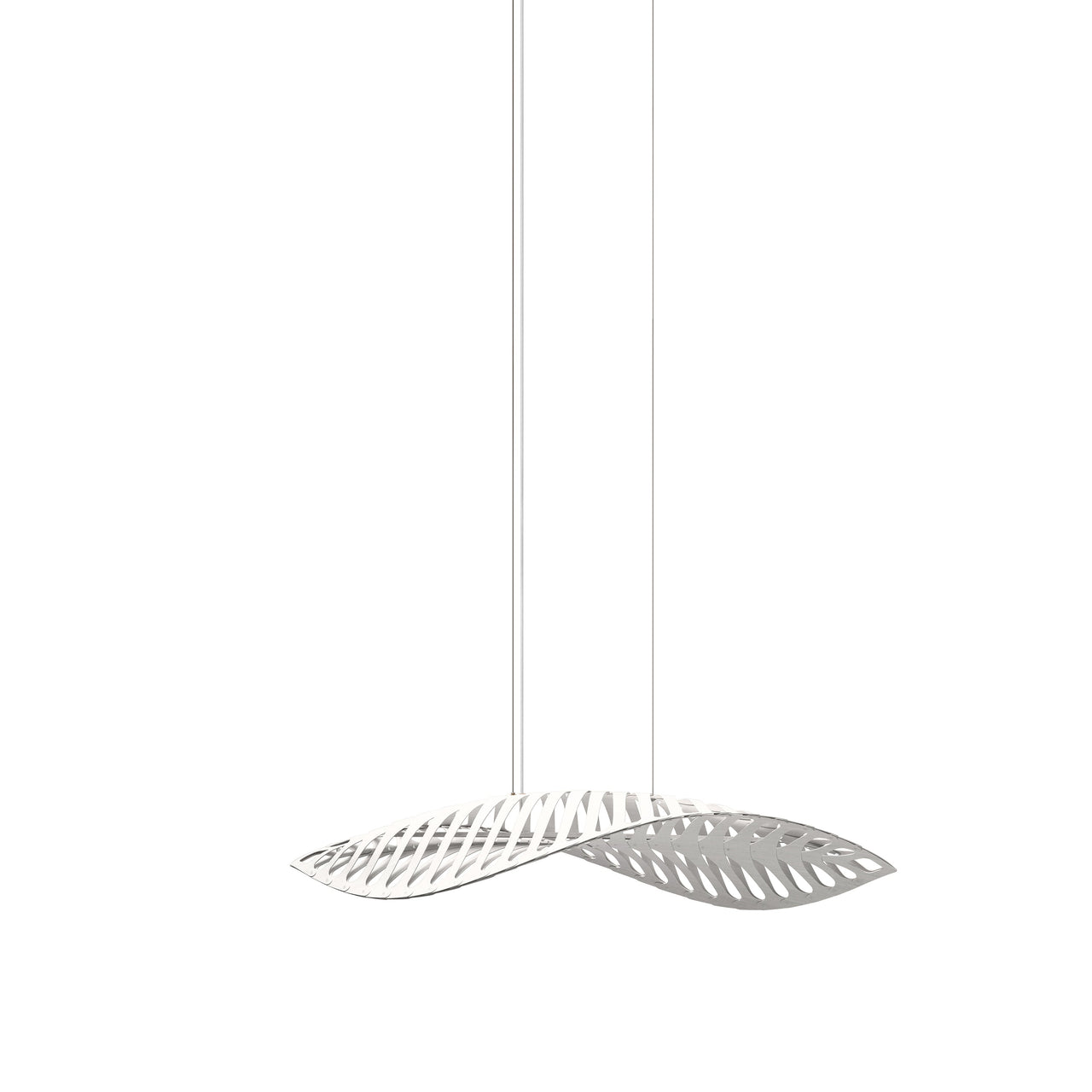 For his magnificent feature light Navicula, designer and New Zealand-based outdoorsman David Trubridge went rolling in the deep, at least metaphorically. The layered shape was Inspired by microscopic diatoms, a strain of algae, that float around in the oceans. Thin pieces of bamboo plywood curve and flow, a marvel of computer-assisted woodcutting. Lit from within by a row of LED pinpoint lights, Navicula casts magical patterns in its wake. Flat-packed for eco-friendly shipping and a snap to assemble with furnished nylon clips.