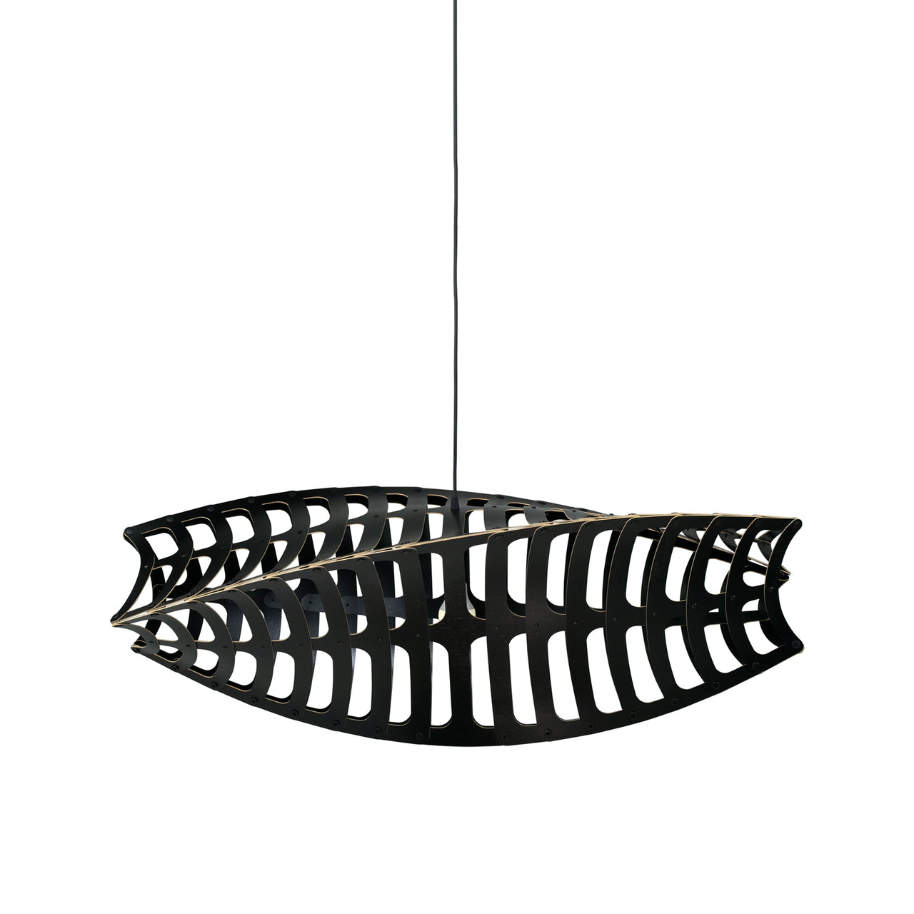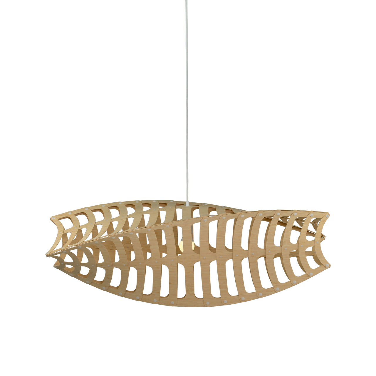 Inspired by the natural beauty of microscopic diatoms, the horizontal expanse of the triple-sided Toru twists and turns alluringly, appropriately named after the Te Reo Māori word for "3." Adding verve to any decor with its range of colorways, David Trubridge’s bamboo pendant adds to the ambiance with its enchanting shadow play.