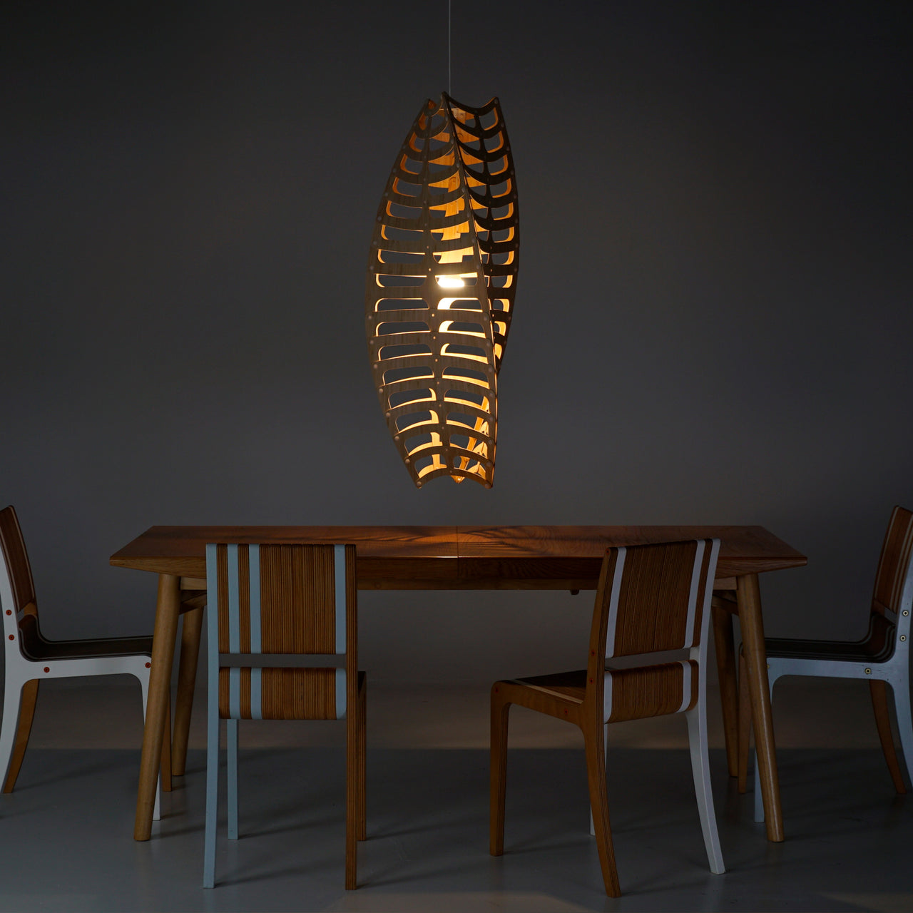 Arriving in New Zealand a few years later, David began to create furnishings inspired by his time at sea and eventually expanded to include his distinctive lighting, becoming an influential presence in the design world. An environmental sensibility governs his operation there, including recycling factory and studio waste, exclusive use of hydro electricity and eco-supportive shipping and freighting. As David puts it, “If design is not actively trying to preserve our future it is, by default, destroying it."
