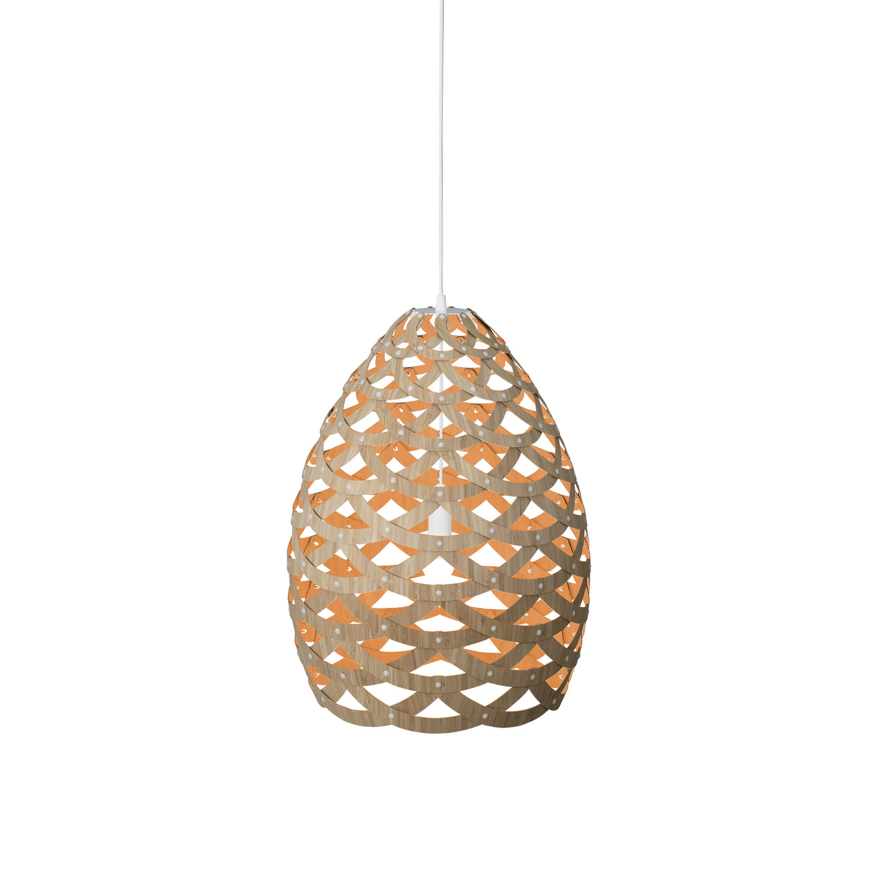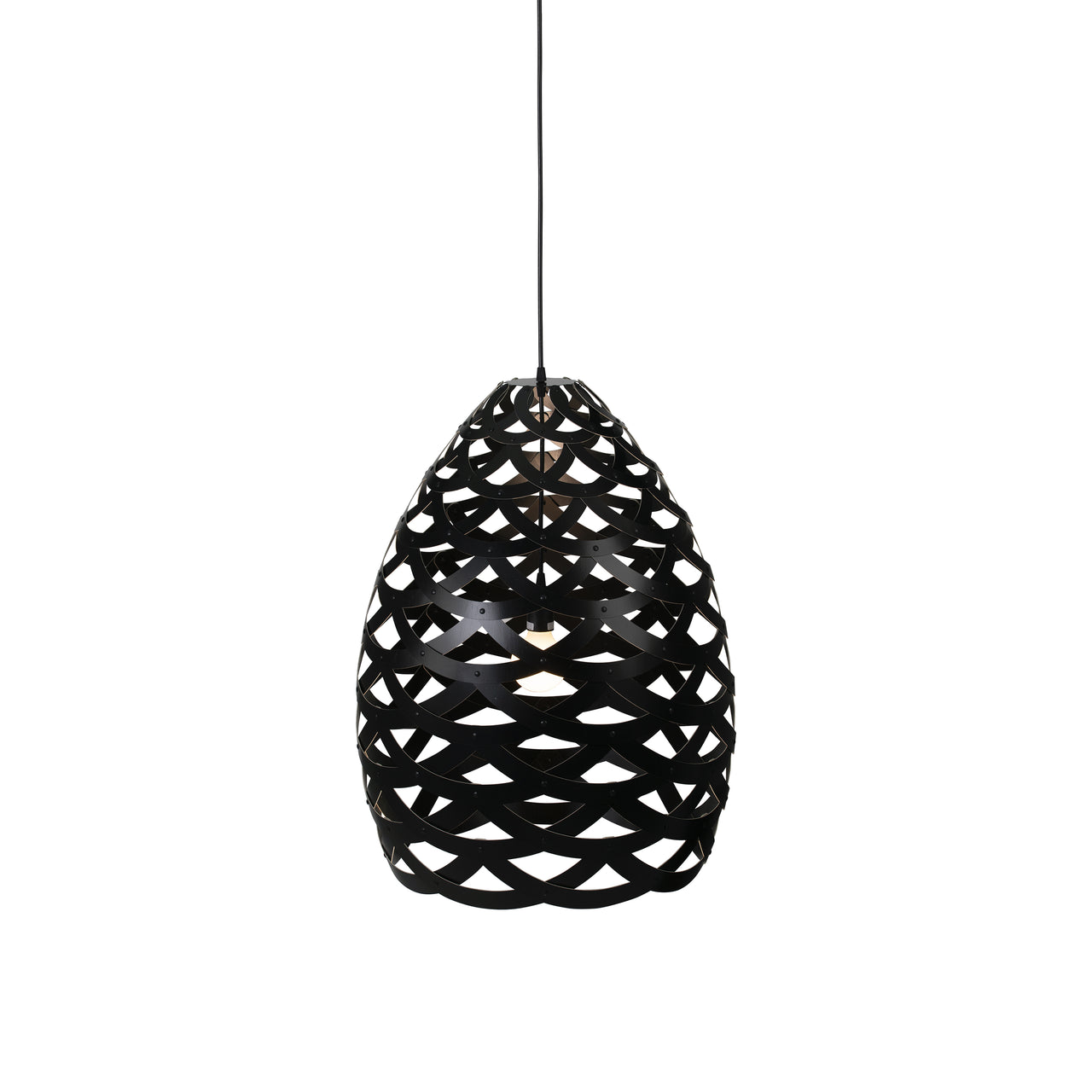 Named for the New Zealand honeyeater, T??'s structure is suggested by the songbird's necklace of interwoven rings. In David Trubridge's medium version, as with its smaller and larger siblings, half-circles of sustainably grown bamboo plywood sourced from an FSC-accredited factory are woven into the elegant basket form. Perfect over a dining table or kitchen counter or equally impressive hanging in a stairwell or entryway, the pendant comes fully assembled or flat-packed in the brand's easily assembled Kitset, in an expanded range of color options.