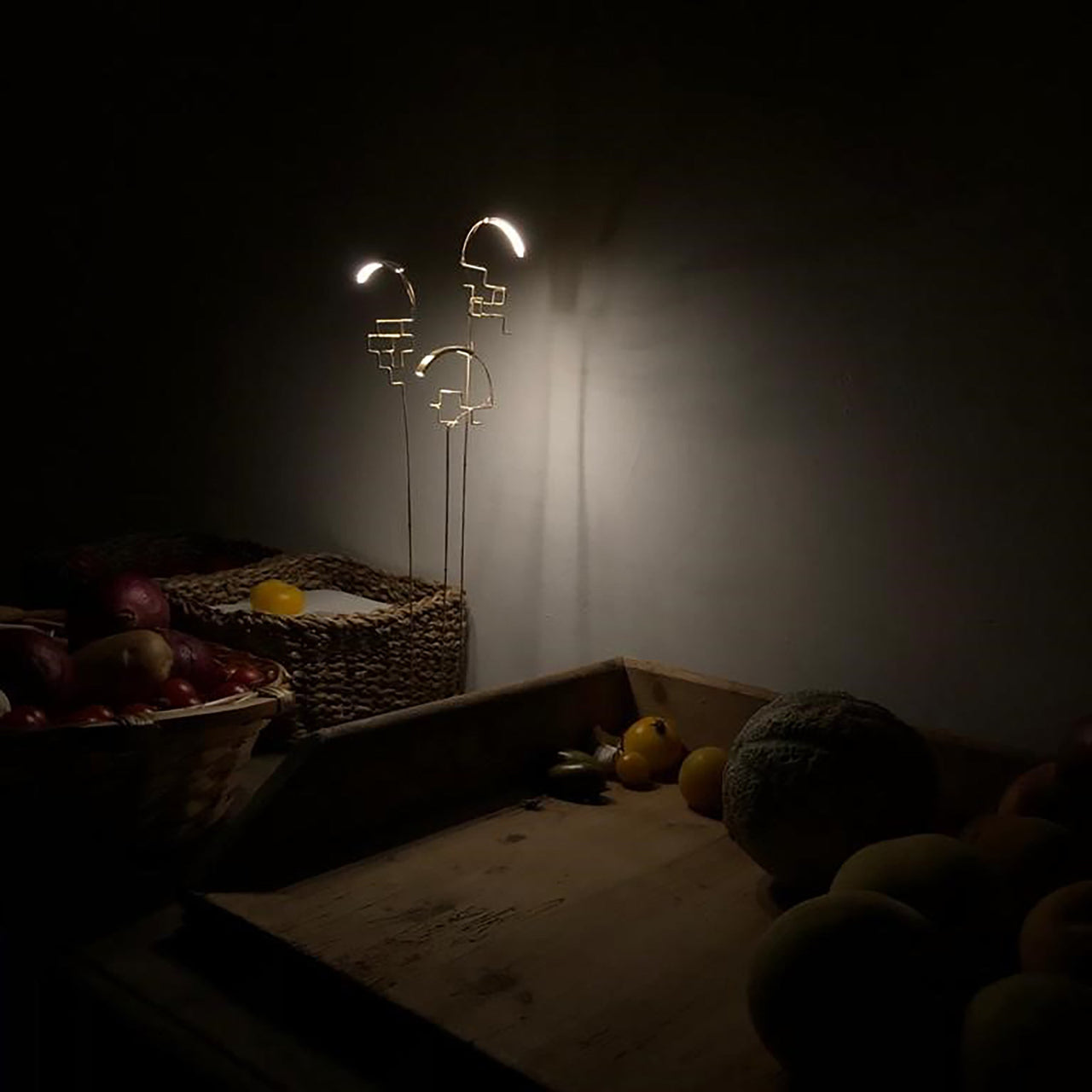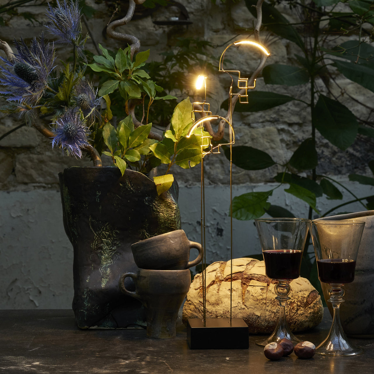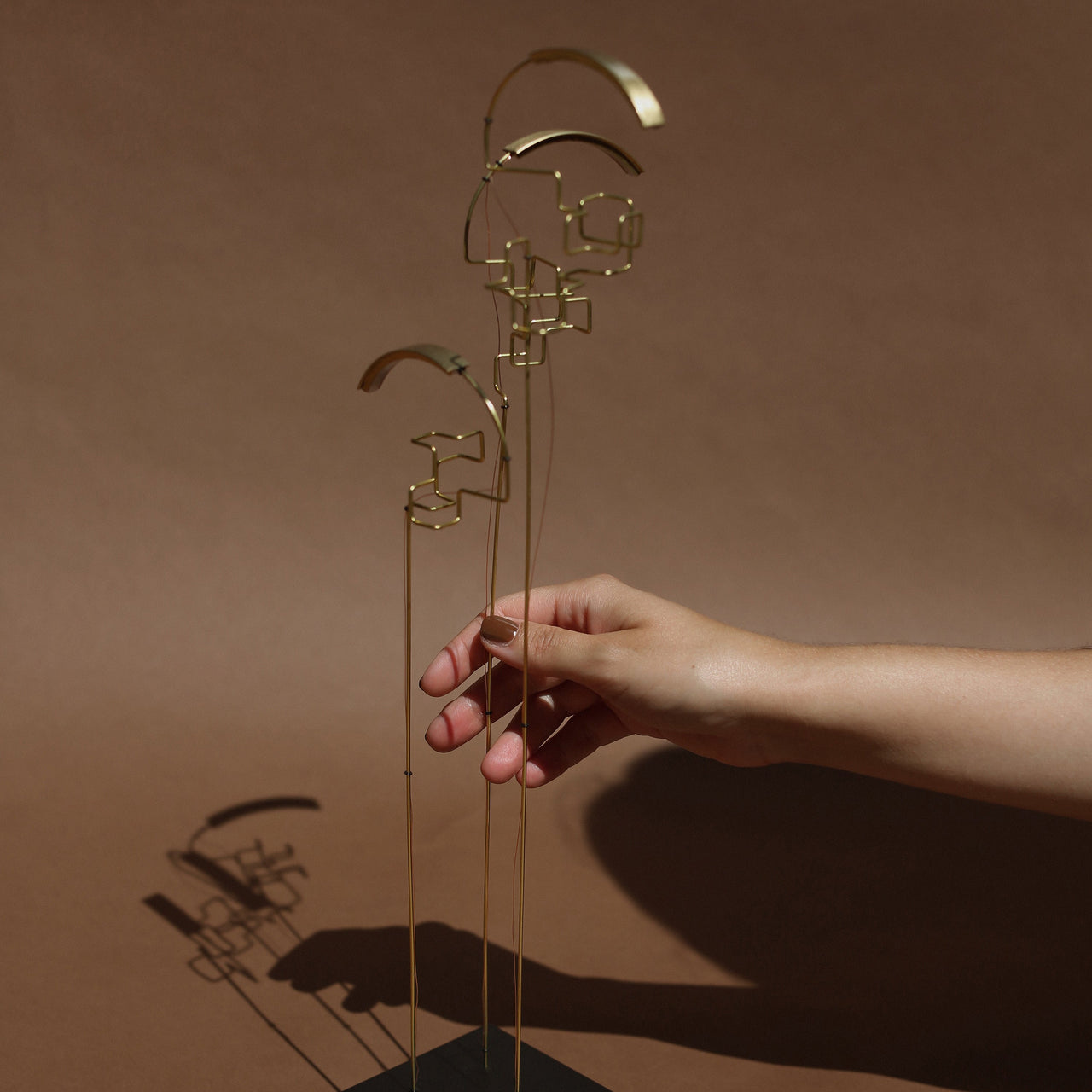 Boucle stems from the imagination of French artist Eric de Dormael, who's brass and steel wire work considers the encounters between light and architectural forms. His studies into light and shadows, shapes and empty spaces, and how even the patina plays on this tension is central to his sculptural art work and products such as this series. Drawing is a particularly primordial aspect of this work, as is the fluidity of form.