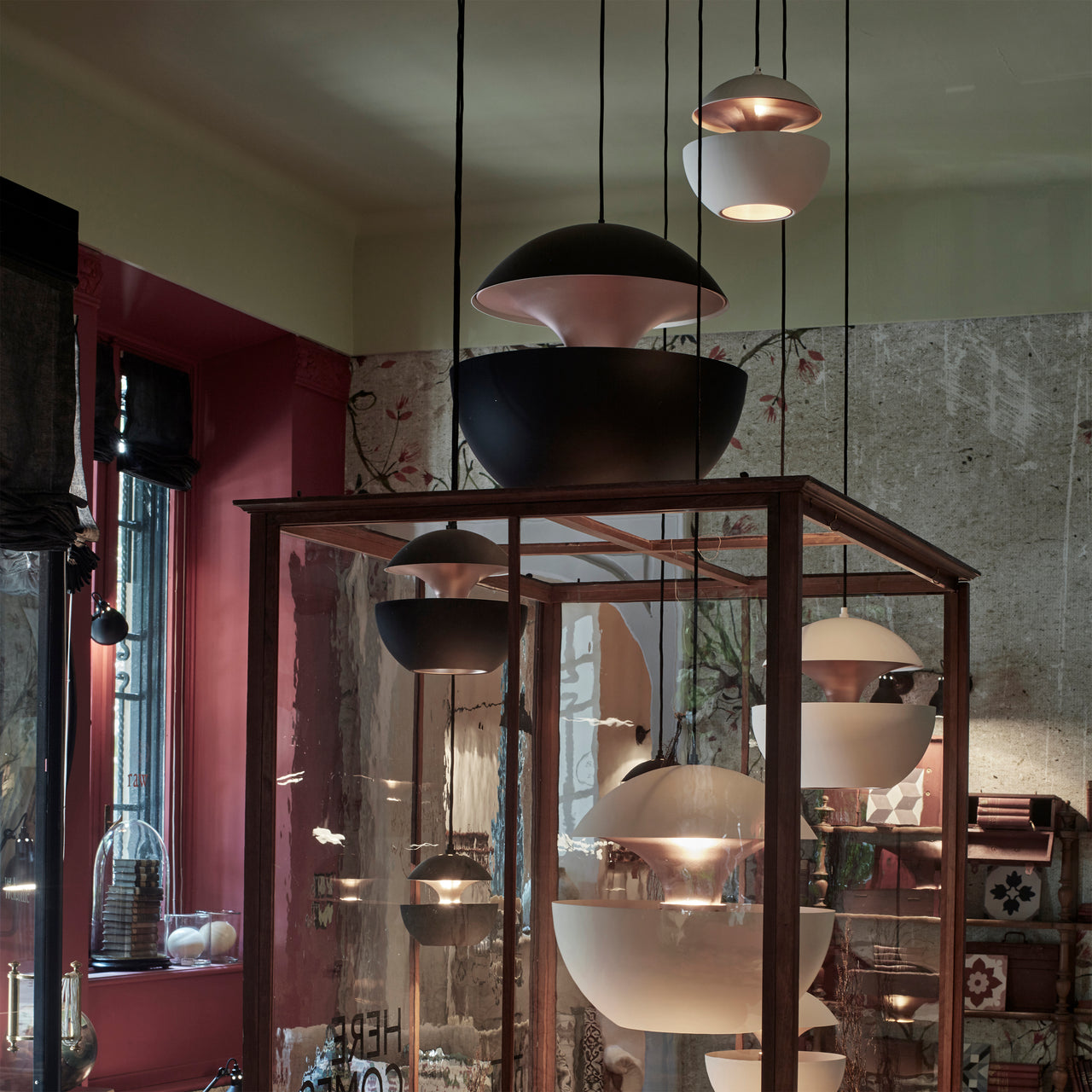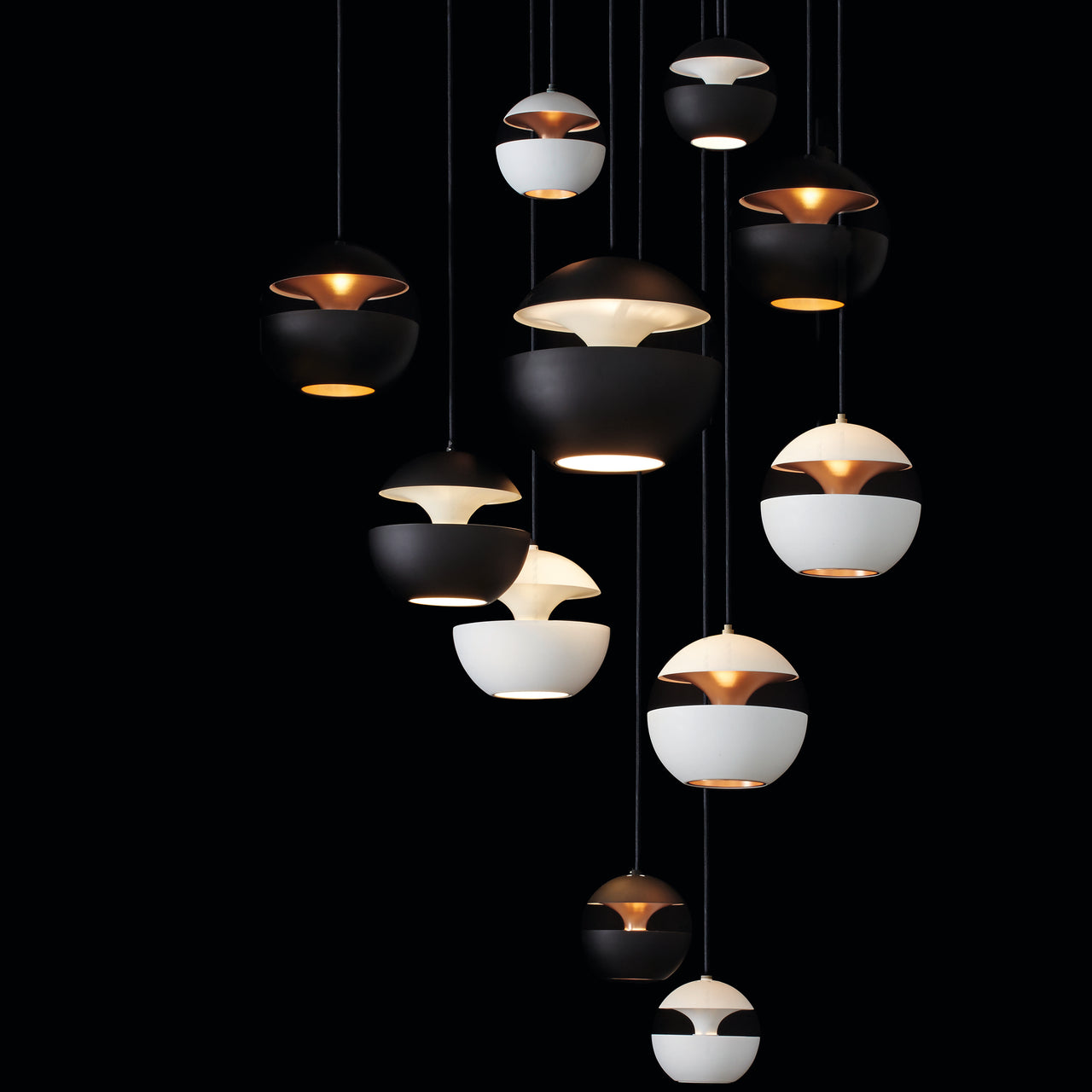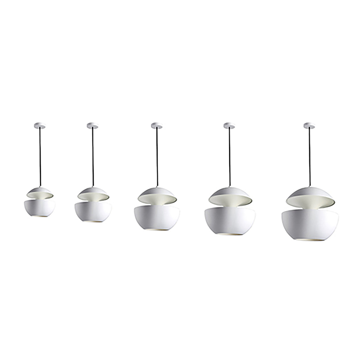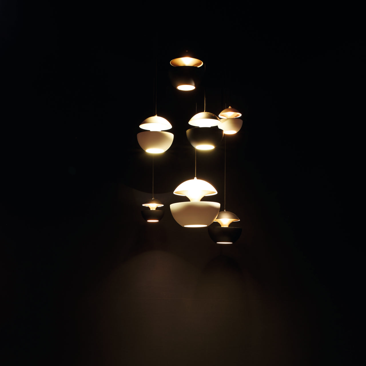 Memories of watching the sunset over the Garonne river in southwest France inspired architect Bertrand Balas’ original 1970 pendant. A chance meeting with DCW’s Philippe Cazer and Frédéric Winkler led to a timeless re-edit of Here Comes the Sun. With its magical reflected light, the hanging fixture comes in 5 sizes—from mini to oversized—to suspend alone or in a dazzling cluster.