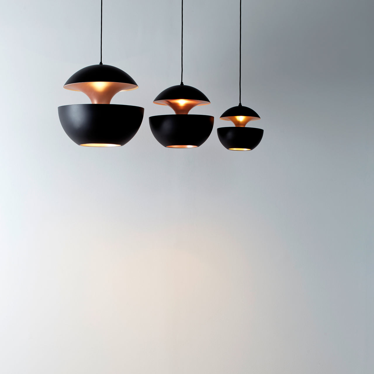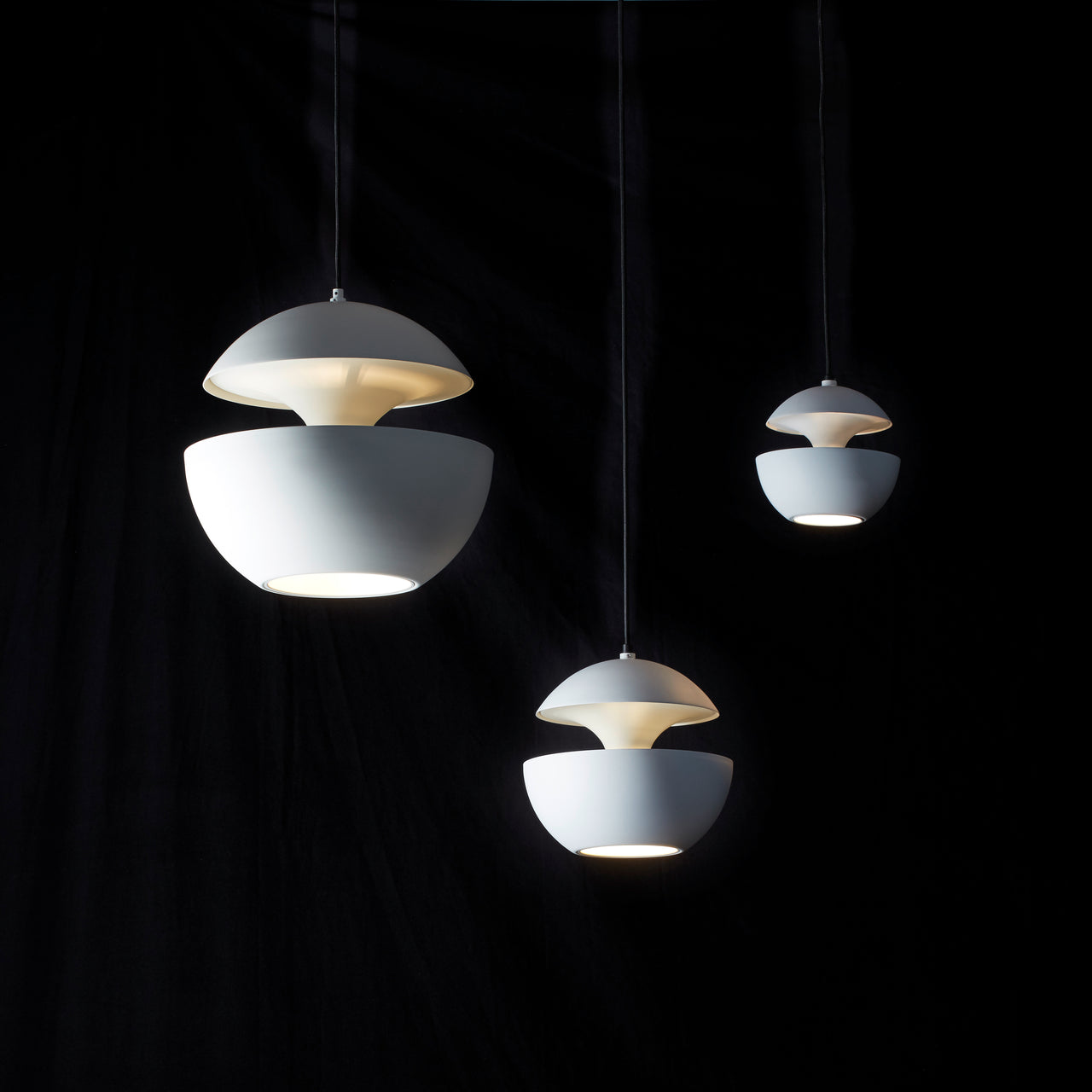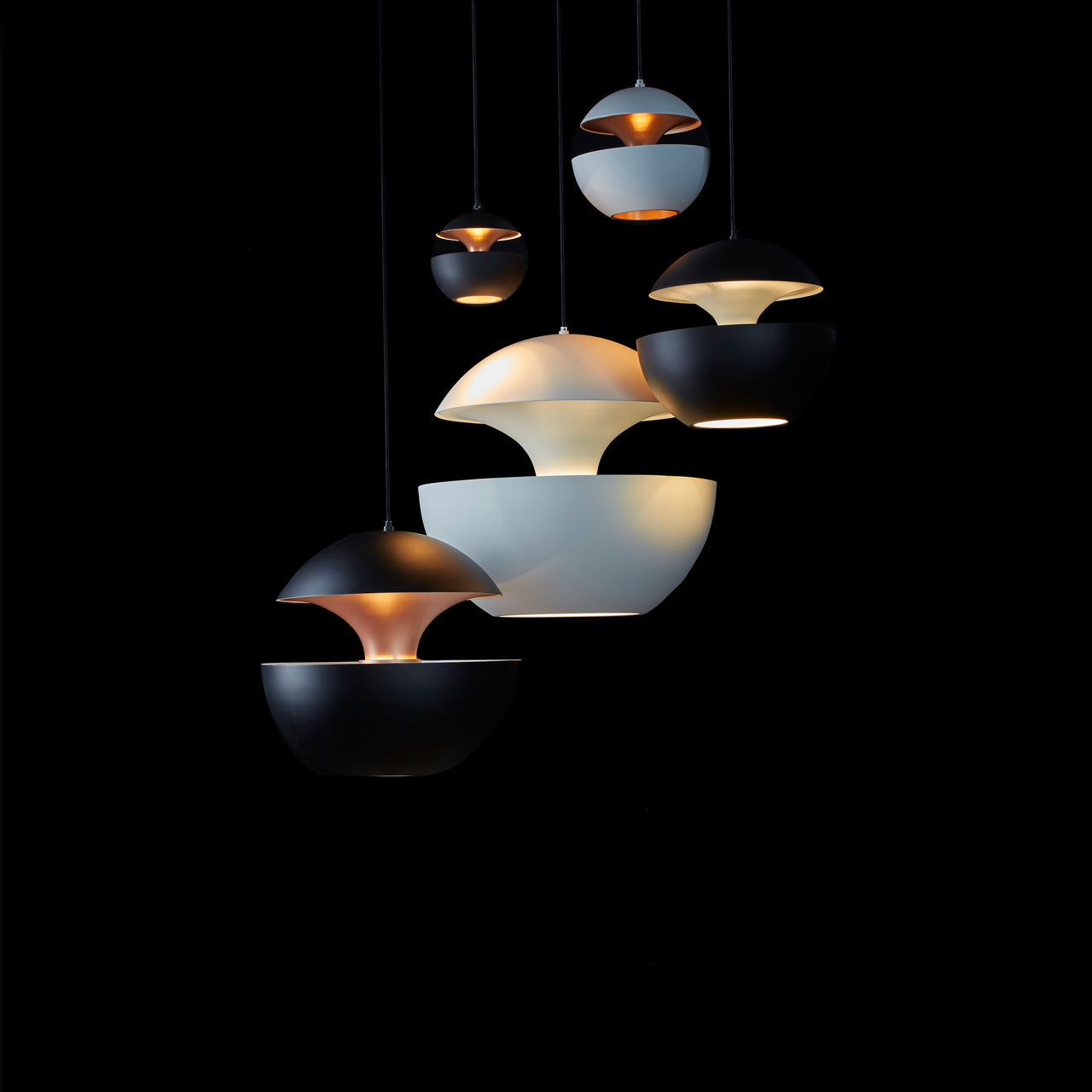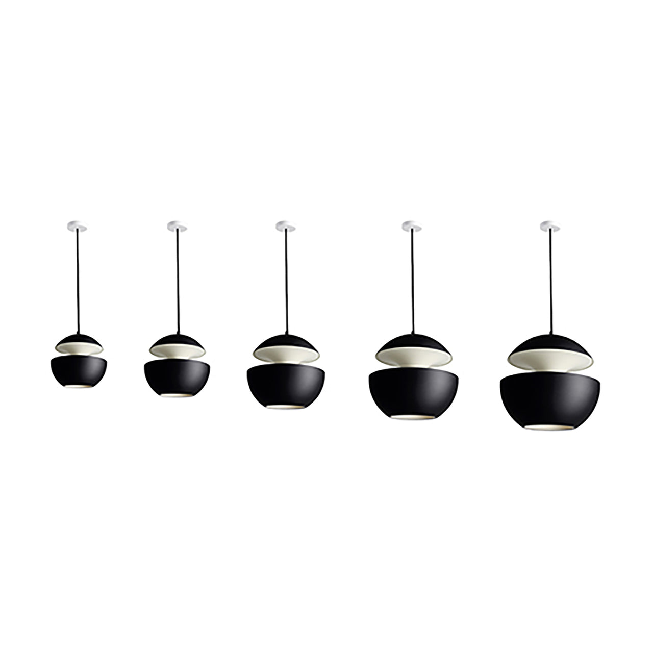Memories of watching the sunset over the Garonne river in southwest France inspired architect Bertrand Balas’ original 1970 pendant. A chance meeting with DCW’s Philippe Cazer and Frédéric Winkler led to a timeless re-edit of Here Comes the Sun. With its magical reflected light, the hanging fixture comes in 5 sizes—from mini to oversized—to suspend alone or in a dazzling cluster.
