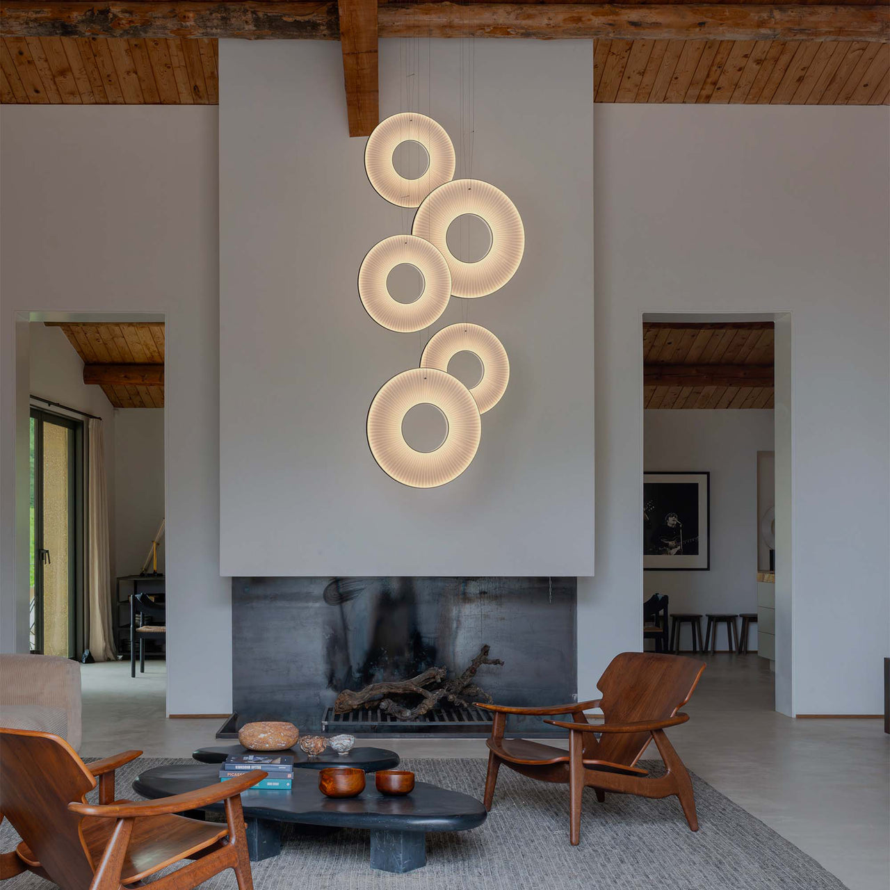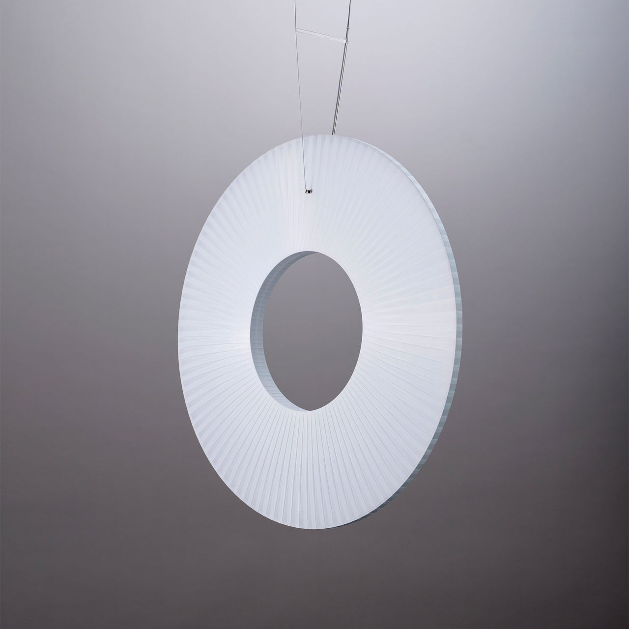 The Iris Pendant Vertical features a slim, elongated design that delivers ambient lighting. Its simple style allows it to integrate effortlessly into different interior spaces. Made with high-quality materials, the pendant is durable and visually appealing. Its vertical orientation suits spaces with high ceilings or areas needing a slender light source.