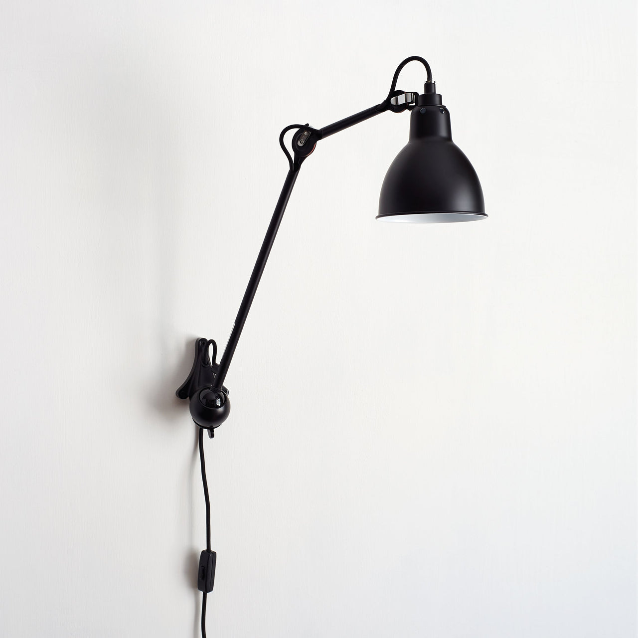 With N°222, Bernard-Albin Gras' signature light comes in a usefully compact, wall-mounted version with plug-in cord. First introduced in 1921, the innovative articulated-arm design revolutionized lighting in both homes and offices. Both lastingly efficient and a design icon, it's just as vital a century later with its sleek steel frame in satin-black finish and an assortment of shade choices including bold accent hues, varied metal finishes and frosted glass.