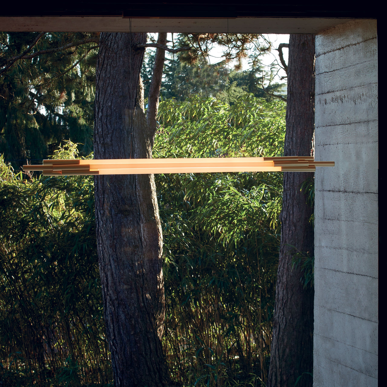 Looking like a cross between skyward shooting stars and a bunch of pick-up-sticks, Sebastian Summa bundles an array of LED-powered opal glass tubes in his elegantly horizontal pendant. The Berlin-based designer once trained as a blacksmith and says his inspiration also reflects the worlds of science fiction and astronomy. Capped with gleaming metallic end-pieces, his glowing lighting arrangement brings a wondrous presence that's apropos in a variety of environs.