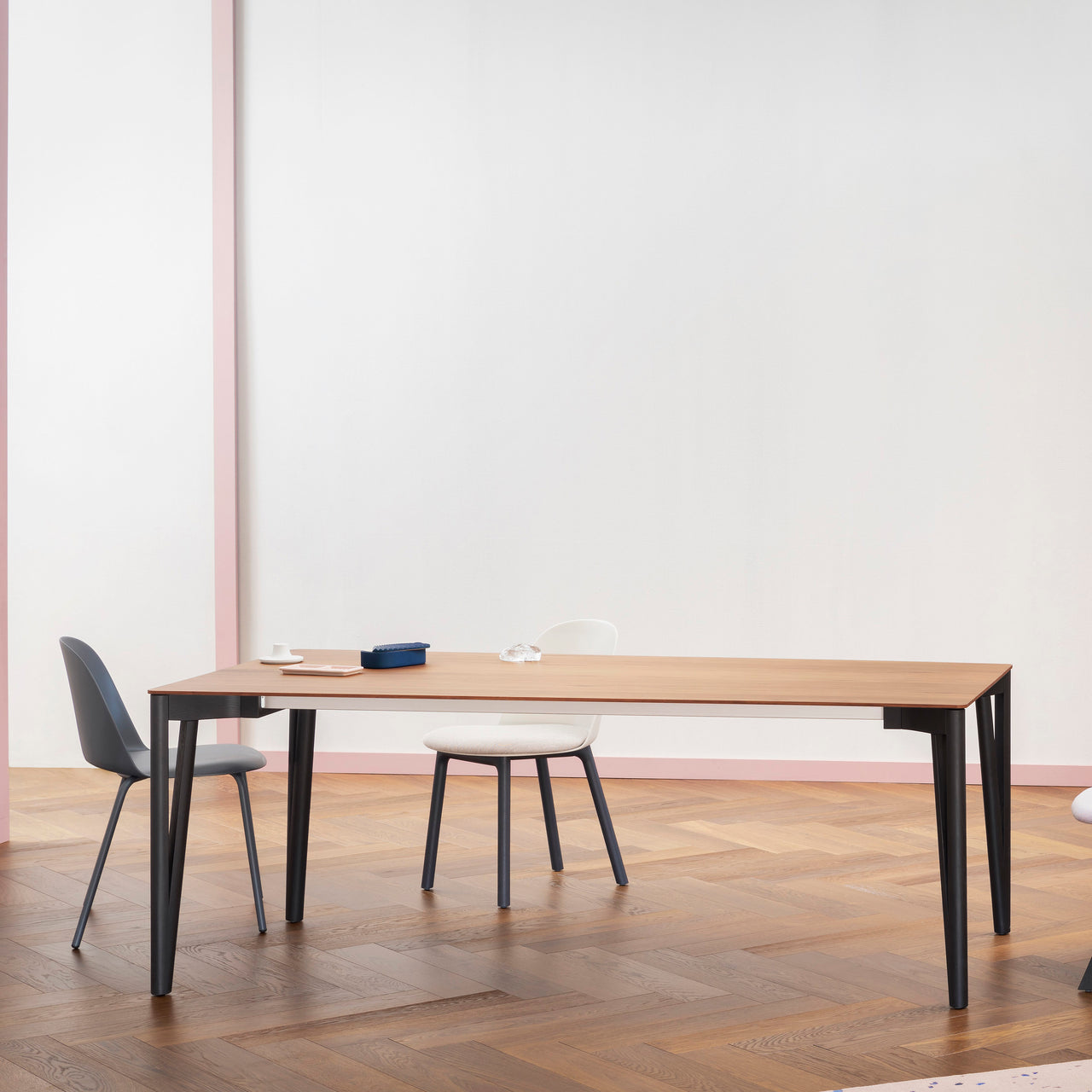 Decapos expansive large version, like its sibling smaller dining tables, has an elegantly linear look, with crisply defined legs in a minimalist V-shape. Designers Francesco Beghetto and Antonio Manaigo offer myriad tabletop optionsglass, a travertine-like ceramic, Fenix laminate or wood varieties in Canaletto walnut, natural oak or black-stained ash. In league with the range of fine wood finishes for the base, theres a customized result to suit any dining space, faultlessly made in Italy by Miniforms.