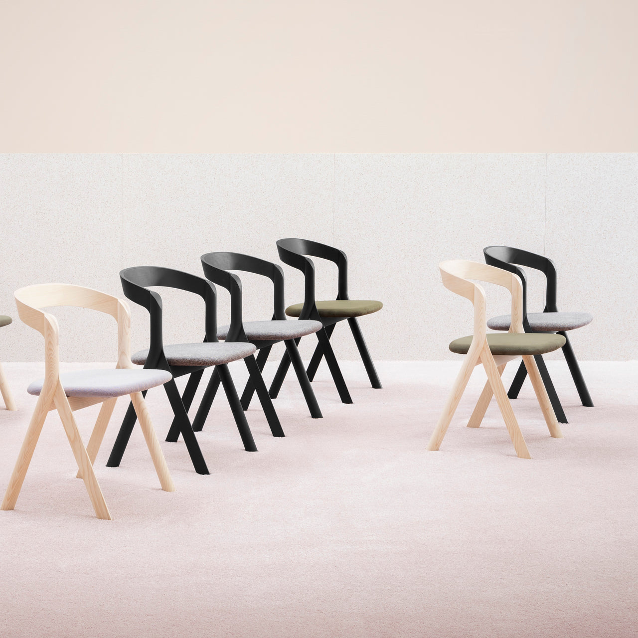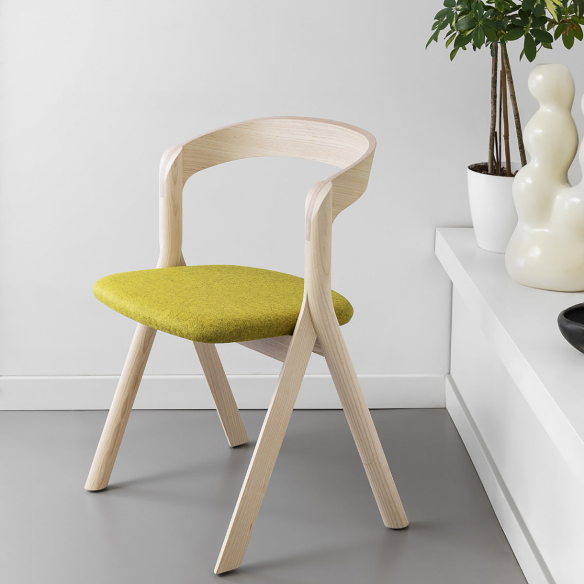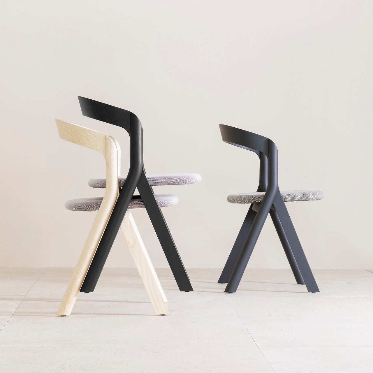 Diverge comes from the notion of creating a stackable chair that doesn't look stackable, according to its designer, Milan-based Skrivo. Miniforms€™ chair is characterized by its cylindrical solid-wood frame that splits to become the legs as well as being a support for the molded plywood backrest. Stackable up to 3, the chair also features a comfortably cushioned seat upholstered in a wide selection of premium materials.