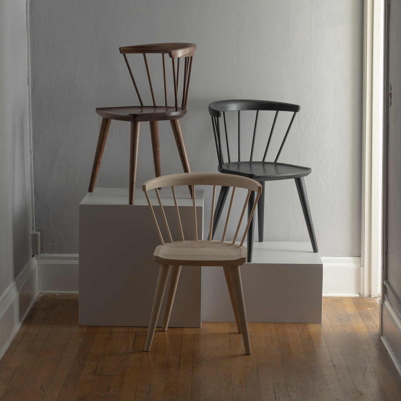 Subtle hand-shaped curves and classic wedged-tenon leg joinery define the Oxbend Windsor Chair, delivering a comfortable and visually balanced seating experience. Crafted from domestically sourced hardwoods—such as walnut, white ash, or charcoal ash—each piece is finished with a VOC-free hardwax oil that enhances durability while preserving the wood's natural character. Optional leather seat pads in a range of colors offer added comfort. Designed by Justin Nelson, founder of Fernweh Woodworking, the chair draws influence from Danish designer Hans Wegner.