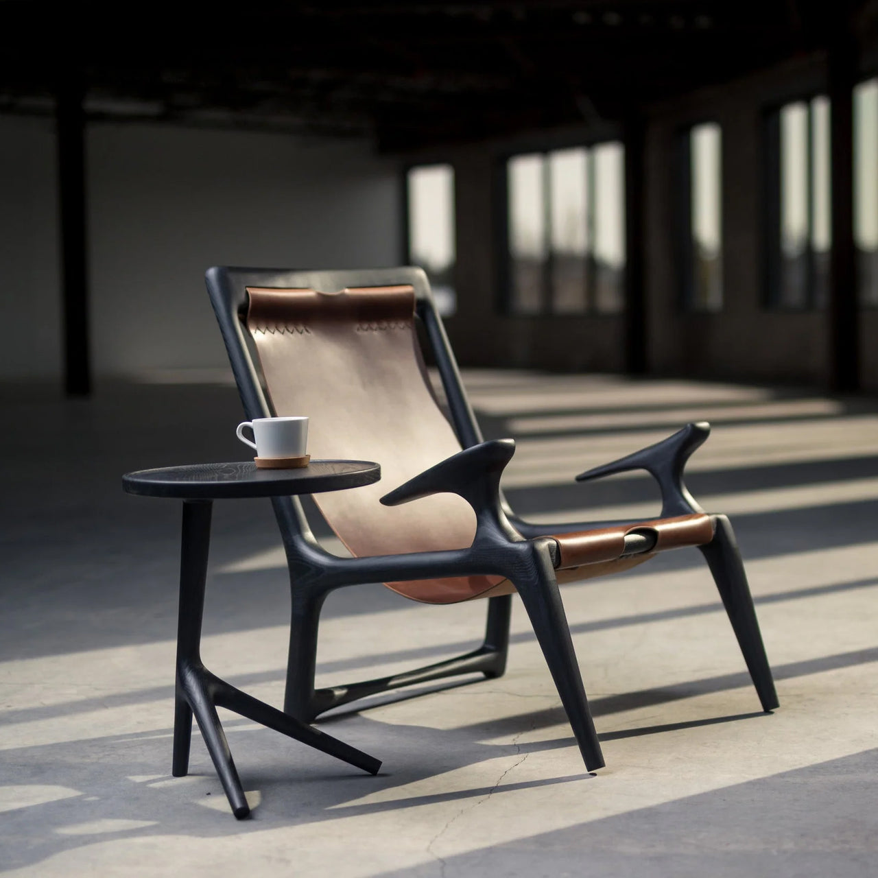 The Sling Chair by Fernweh Woodworking combines handcrafted quality with a design inspired by Danish and Scandinavian aesthetics. Its frame, meticulously hand-shaped, is available in high-quality Walnut, White Ash with a Danish Soap finish, or Charcoal Ash. The comfortable leather sling is available in black, brown, or olive, each hand-stitched to ensure durability and comfort. This award-winning chair was the inaugural piece from Fernweh Woodworking, designed by founder Justin who drew inspiration from renowned designers like Sam Maloof.