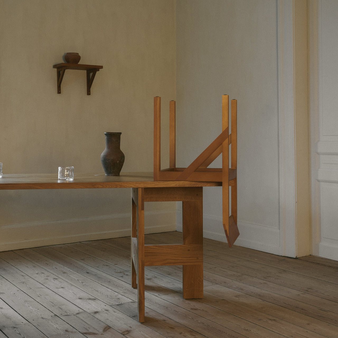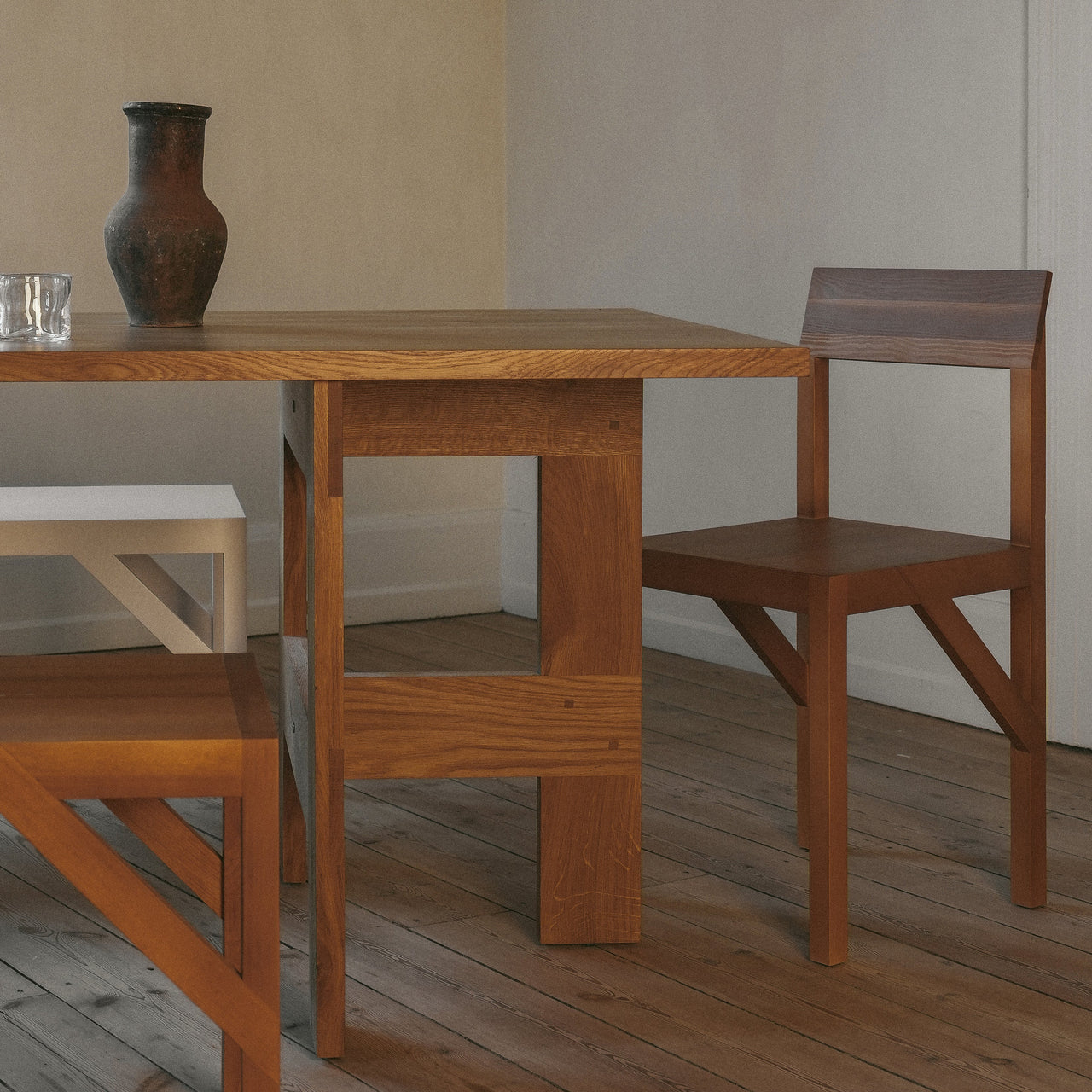 Faultlessly crafted, Bracket makes a design feature out of the functional horizontal element that ties the chair’s legs to the seat, providing stability and a visible nod to timeless construction. Frederik Gustav’s sturdy design is fabricated in solid oiled pine with a flat seat and a slightly angled backrest for hours of appreciable comfort.