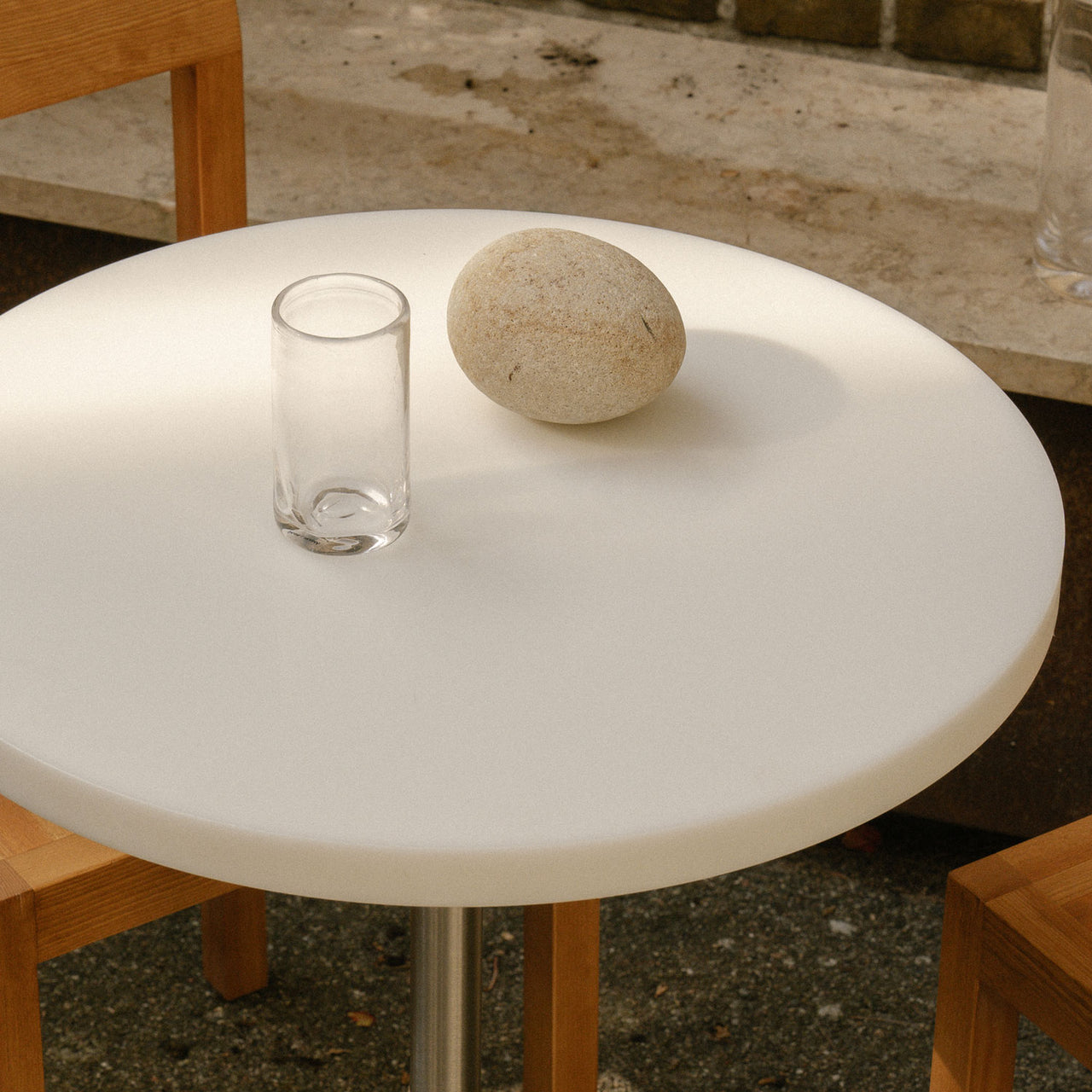 Refined in its utter simplicity, Table 57 from Copenhagen’s Frama features a choice of special yellow limestone or a next-Gen polyethylene tabletop, each seamlessly blending into both indoor and outdoor settings. An exceptional furniture piece designed by Per Holland Bastrup, the round surface sits on a minimalistic stainless-steel base and is especially crafted to cater to a wide range of environments including terraces and outdoor patios.